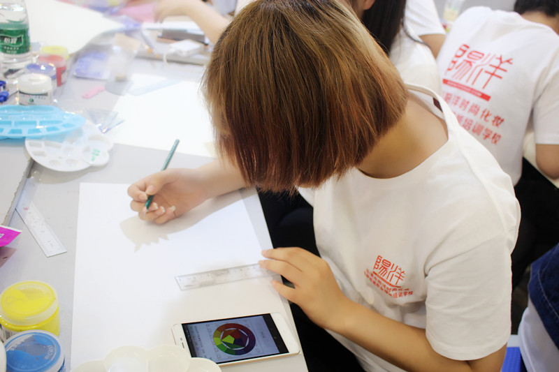 成為一名出色的化妝師,是每個(gè)女孩都?jí)裘乱郧蟮?,女性天生愛美,自然化妝師的職業(yè)就備受青睞,然而,要想成為一名真正出色的化妝師,首先要先學(xué)好形象設(shè)計(jì),因?yàn)橹挥泻玫男蜗笤O(shè)計(jì)才能化出完美的妝容,而學(xué)習(xí)好形象設(shè)計(jì)培訓(xùn)的基礎(chǔ)就是掌握色彩學(xué),這是學(xué)習(xí)形象設(shè)計(jì)的基礎(chǔ)。 今天我們樂清陽洋時(shí)尚化妝美甲培訓(xùn)學(xué)校基礎(chǔ)班的學(xué)員們學(xué)習(xí)了色彩的運(yùn)用,色彩的運(yùn)用對(duì)作為一名化妝師來說也挺重要的。 下圖是化妝初級(jí)學(xué)員們學(xué)習(xí)色彩學(xué)的理論知識(shí):