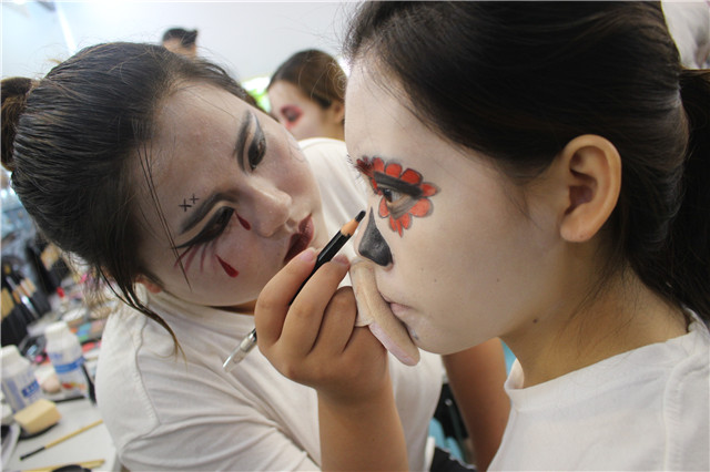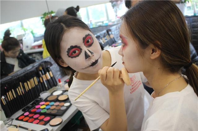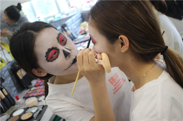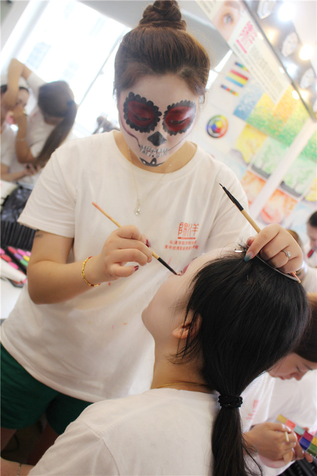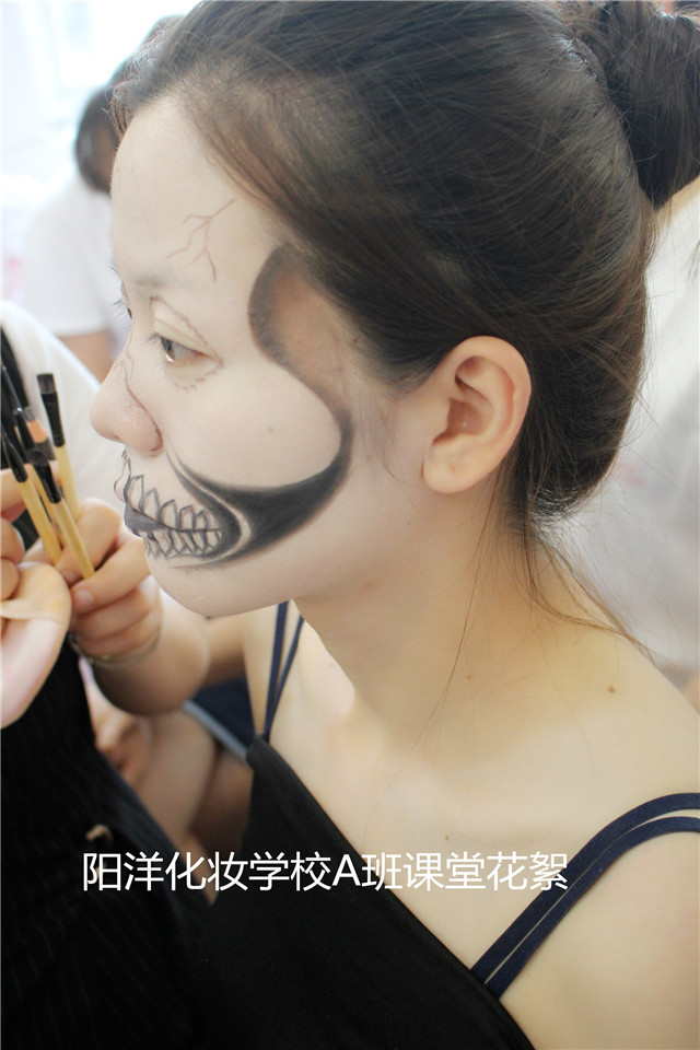 當(dāng)前位置:樂清市陽(yáng)洋職業(yè)技能培訓(xùn)學(xué)校 » 學(xué)生課堂陽(yáng)洋化妝高彩班,骷髏妝(前方高能,膽小鬼勿點(diǎn)哦~)發(fā)布時(shí)間:2018-7-7 9:34:13瀏覽次數(shù):1965 |