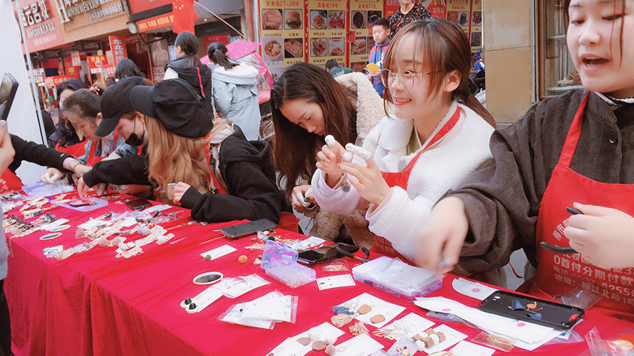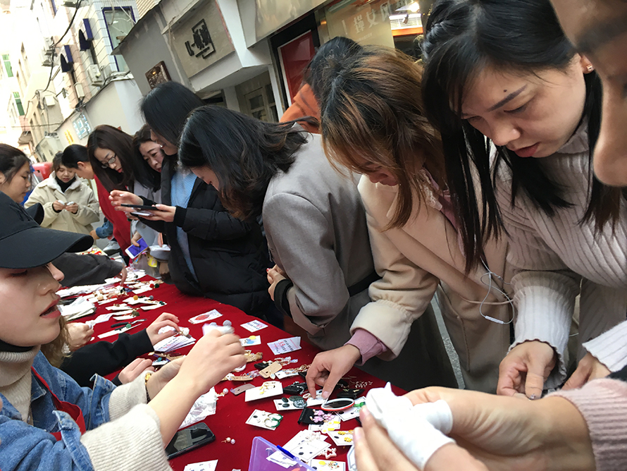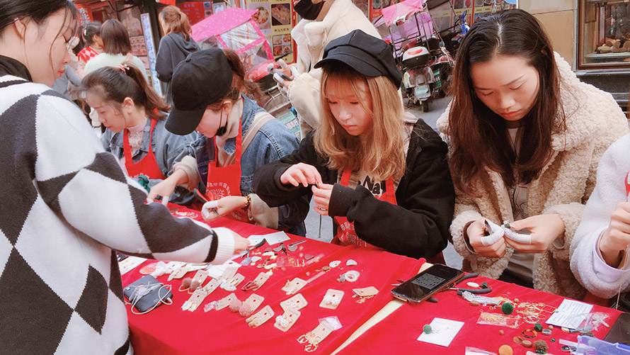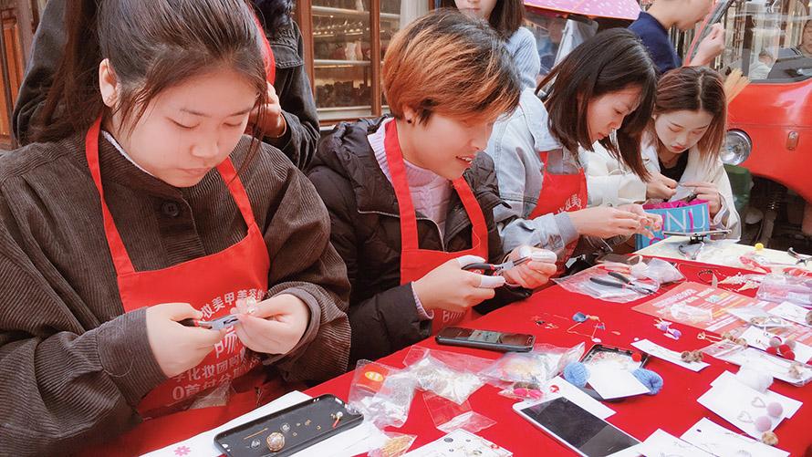 0基礎(chǔ)的同學(xué)們第一次在室外上課,在做手工飾品的時(shí)候,就吸引了無(wú)數(shù)群眾的眼光, 剛做出的飾品就得到大家的認(rèn)可,并購(gòu)買。看到自己的作品得到大家的認(rèn)可,同學(xué)們都感到非常興奮滿足, 而我們的宗旨就是用“匠心精神”傳遞原創(chuàng)設(shè)計(jì)理念,重點(diǎn)培養(yǎng)美業(yè)從業(yè)者“發(fā)現(xiàn)美,設(shè)計(jì)美”的專業(yè)態(tài)度, 將國(guó)際潮流趨勢(shì)分析探尋,用實(shí)用的技能詮釋手作的魅力。