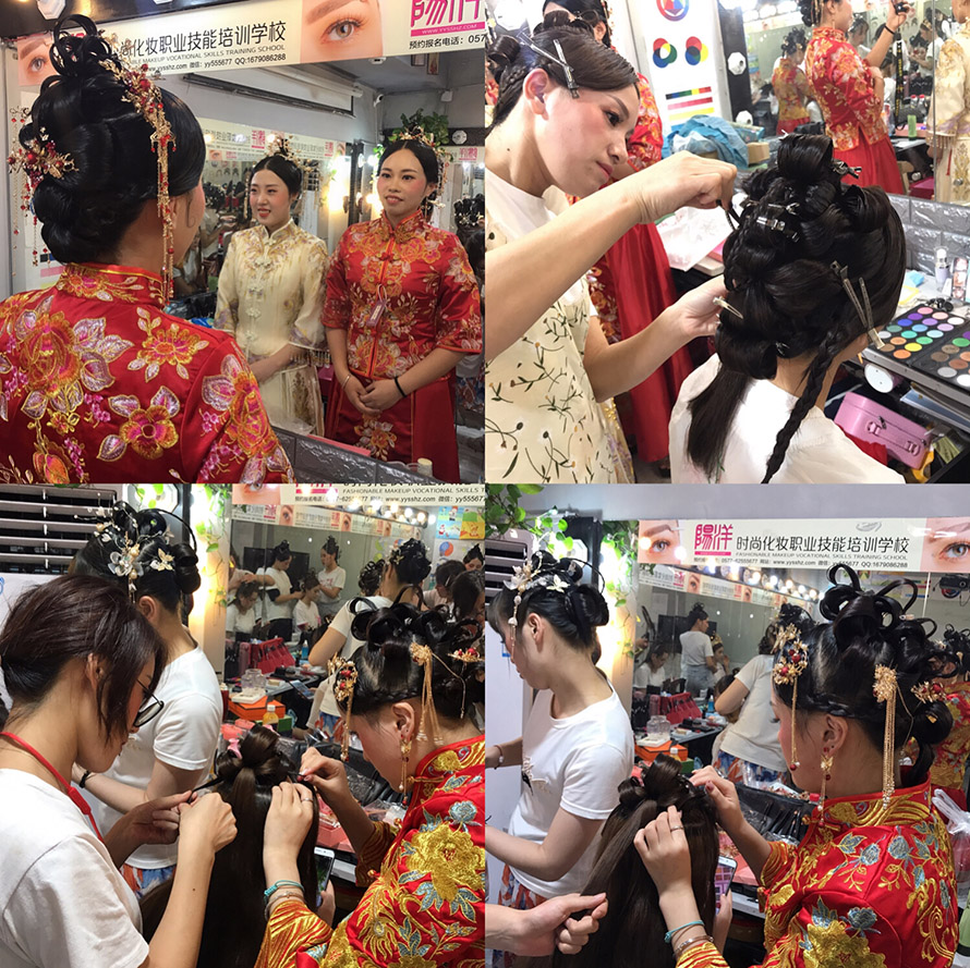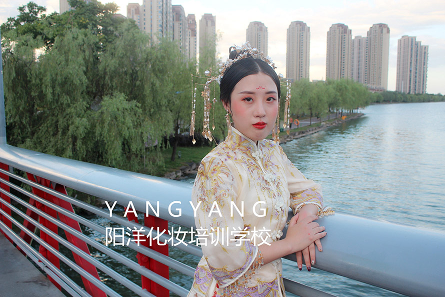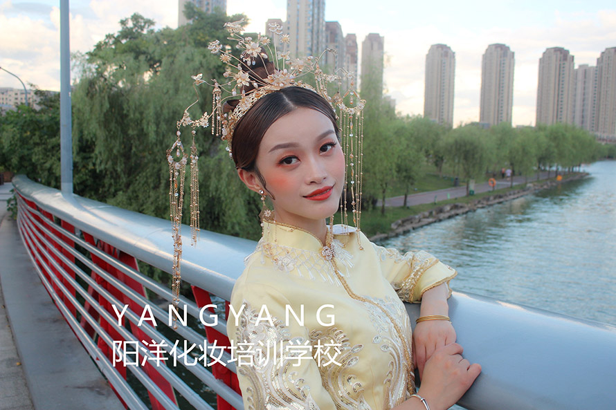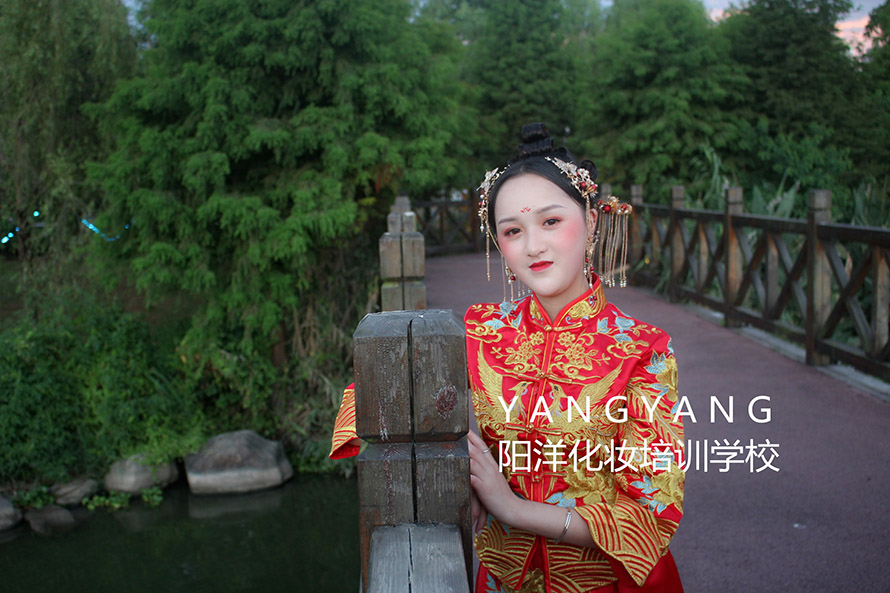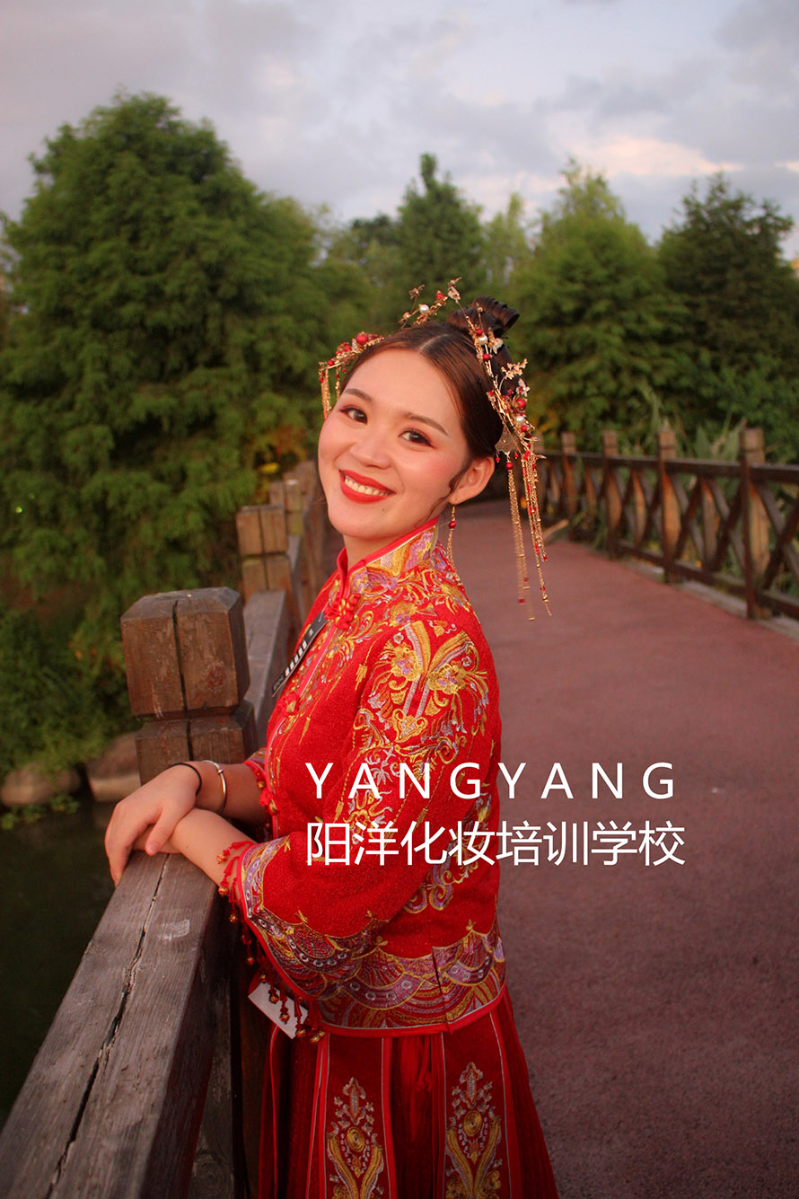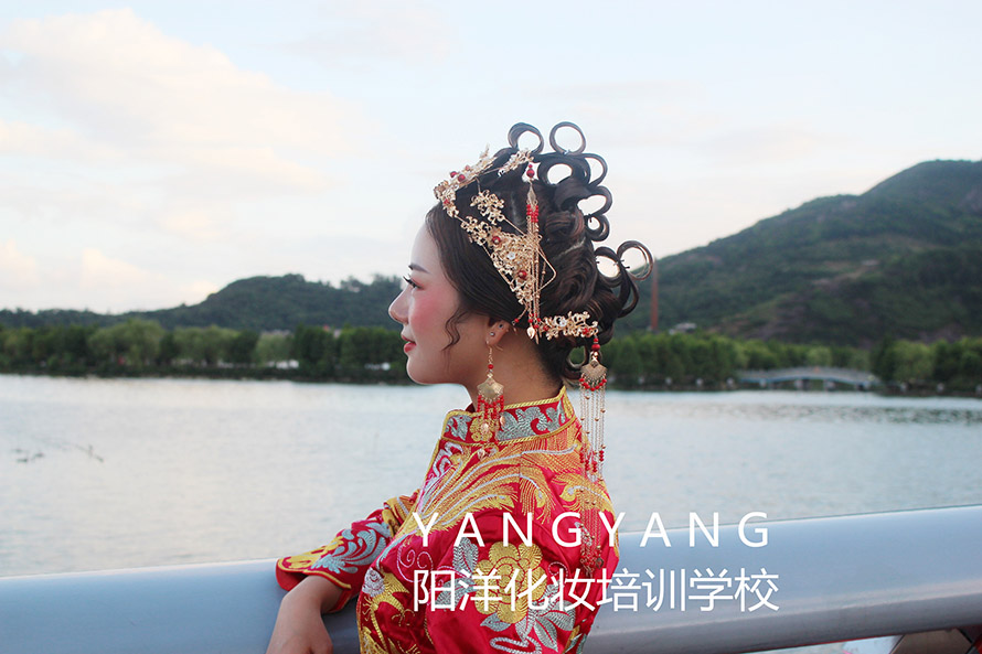 學(xué)習(xí)妝容加發(fā)型和服裝的整體造型,第三個(gè)月以新娘妝為主。