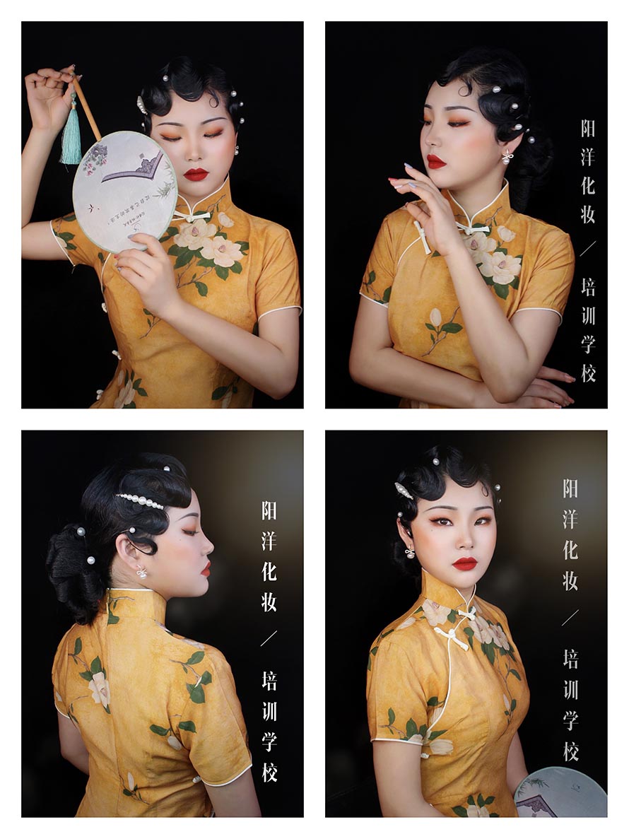 想要做出民國時期上海灘的風(fēng)格,旗袍妝一般都是以復(fù)古手推波的手法