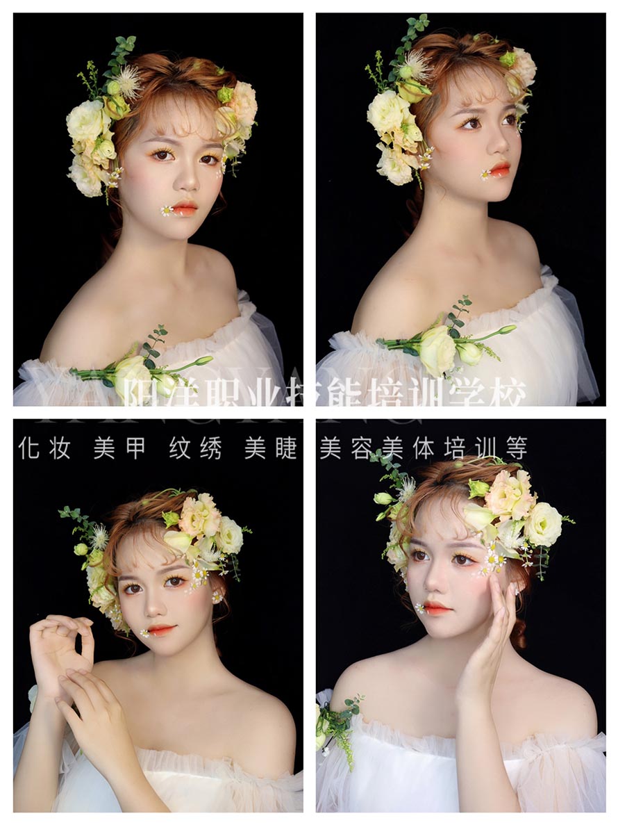 才有花仙子的感覺。選用的都是粉色系的淡雅的妝容才能和鮮花頭飾相結合起來,