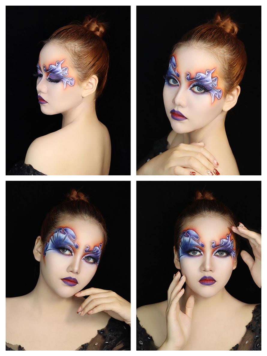 現(xiàn)在很多場合都需要這種妝容的搭配,比入一些演出宴 會之類的活動,畫一個充滿創(chuàng)意的妝容才更加的符合主題。