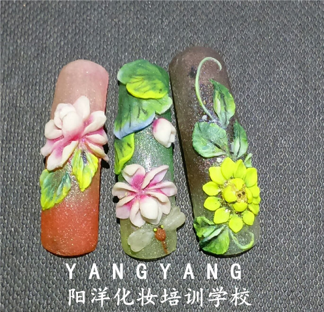 美甲雕花幾乎運用到了所有的美甲產(chǎn)品,如水晶粉、水晶液、洗筆水、美甲專用膠水、鑷子等,手工就可以做出我們想要表達的立體效果。