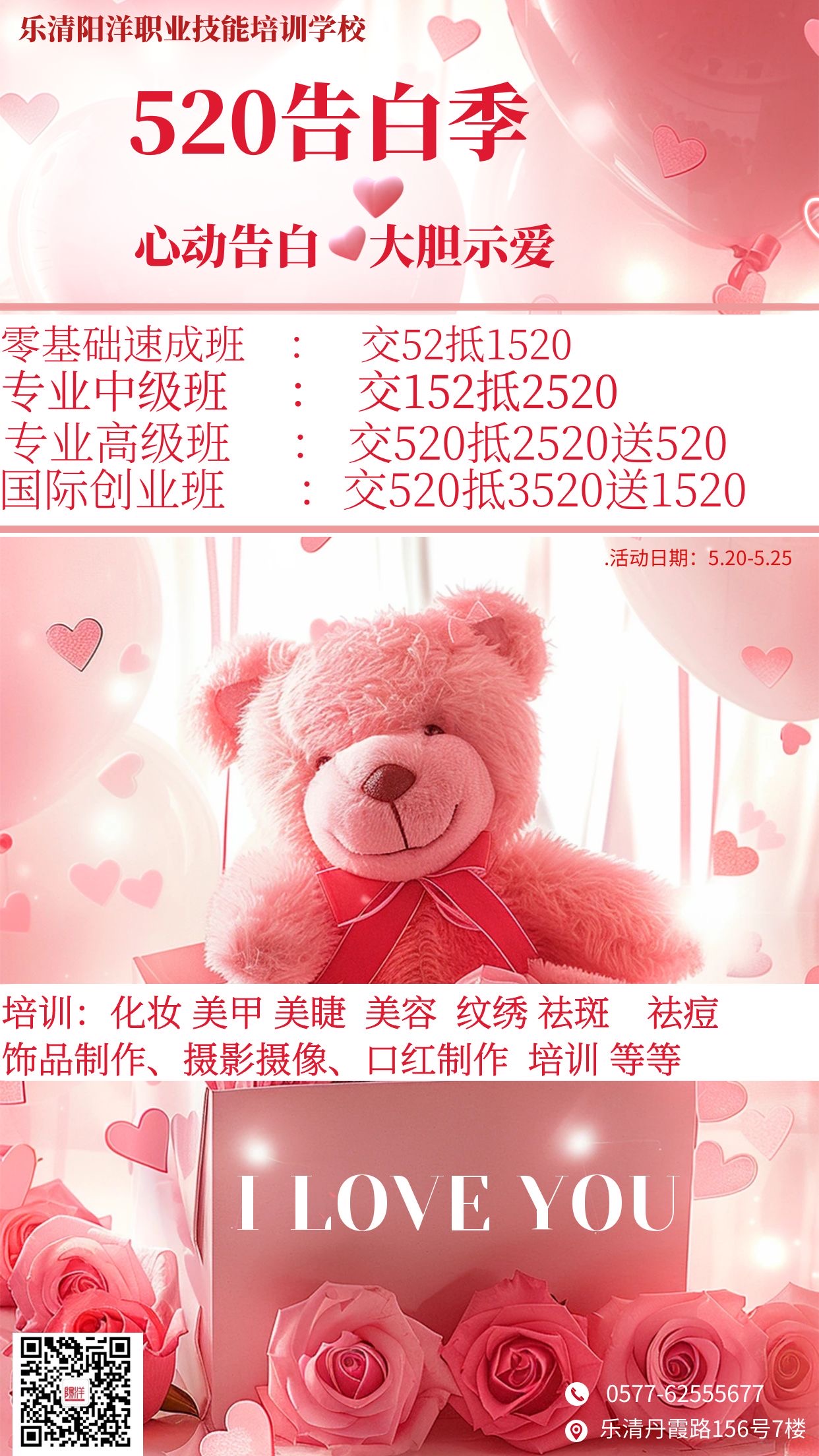 當(dāng)前位置:樂清市陽洋職業(yè)技能培訓(xùn)學(xué)校 » 優(yōu)惠資訊樂清陽洋心動520特別活動!最高可享受3520補(bǔ)貼?。?!發(fā)布時(shí)間:2024-5-20 8:47:25 瀏覽次數(shù):2012 |