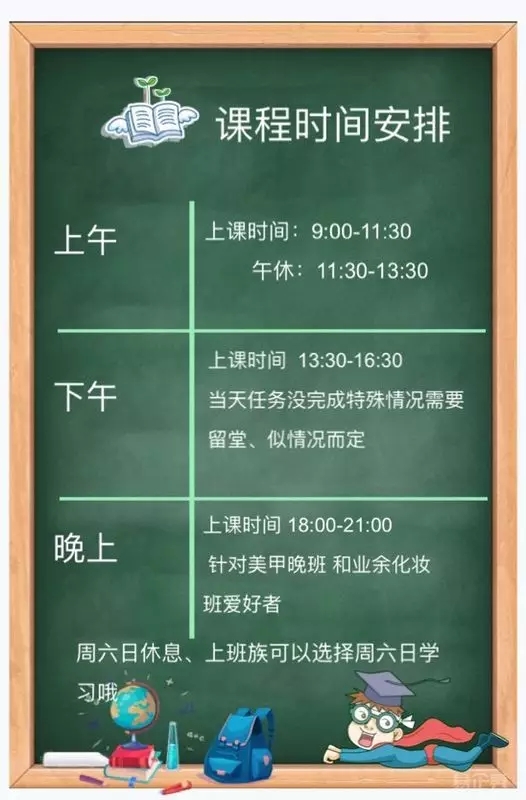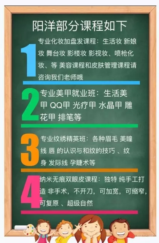 專業(yè)課程有:新娘妝 舞臺妝 各種時尚妝 晚宴妝 影視妝 各種盤發(fā) 韓式半永久(紋銹 美瞳線 唇)美甲內(nèi)容培訓(xùn)等 化妝上課時間: 早上9:00—11:30 下午13:30—16:30 美甲時間: 白班下13:00—16:30 晚班18:00—21:00 教學(xué)內(nèi)容全面豐富 75%實操+15%理論+10%創(chuàng)新設(shè)計! 實操為主,真人一對一授課 還有精彩的優(yōu)惠等著你呢!