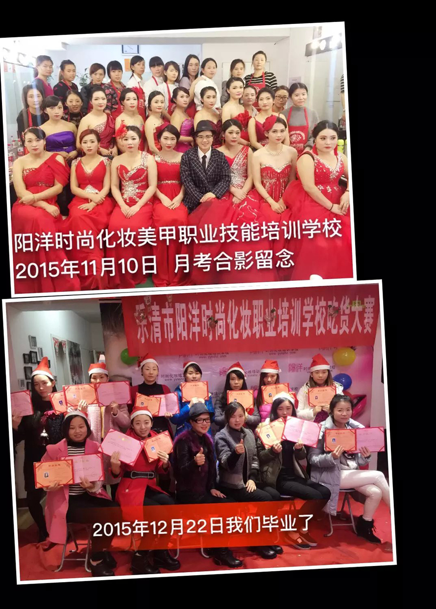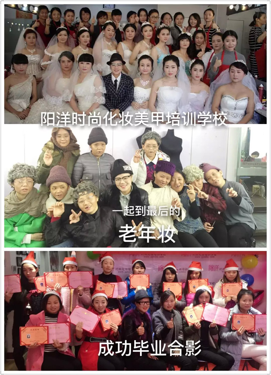 一直到15年8月才正式接觸化妝,在選擇化妝學(xué)校的時(shí)候也是非常的糾結(jié),那么家學(xué)校不知道該怎么選擇,最后在表姐的介紹下,我來到了樂清陽洋時(shí)尚化妝職業(yè)培訓(xùn)學(xué)校,看了課程聽了老師的介紹后報(bào)了四個(gè)月化妝盤發(fā)美甲精英班,每個(gè)月都是學(xué)不一樣的課程,前面是學(xué)是基礎(chǔ),生活?yuàn)y等,我們第一堂課上的就是化妝師職業(yè)規(guī)范,因?yàn)槲覀兊睦蠋熅褪切iL,他和我們說一個(gè)很負(fù)責(zé)的化妝師就應(yīng)該有一個(gè)好的形象以及好的品行,老師上課都是手把手的教,每天都必須過關(guān),在平時(shí)我們的生活上也很關(guān)心我們,很照顧我們大家,這讓我們有種家的感覺,然后就是是發(fā)型課程老師每天都會(huì)來看我們的學(xué)習(xí)情況,并幫我們指出不足,并讓我們改正,我最喜歡的是第四個(gè)月的課程學(xué)習(xí)的妝面都是每天不一樣的,也很夸張,各種各樣的妝面,別人能夠想到的妝面我都能完成,適應(yīng)社會(huì)需求,得心應(yīng)手,在陽洋學(xué)校還交到很多朋友,雖然我們年齡差很多,雖然我們來自不同的地方,但是我們很快學(xué)融入在一起了,他們都很幫助,照顧我,我們之間沒有代溝,在一起學(xué)習(xí)跟開心。 在這里要感謝樂清陽洋時(shí)尚化妝職業(yè)培訓(xùn)學(xué)校的各位老師,在他們的細(xì)心教導(dǎo)下,我相信成為化妝師的夢(mèng)想會(huì)越來越近的想想自己以后可以憑借自己所學(xué)把人家變得漂亮,更能養(yǎng)活家里人,就有一種成就感還有幸福感。再次感謝各位老師對(duì)我的嚴(yán)格,和悉心教導(dǎo),沒有你們就沒有今天的我,真心感謝!