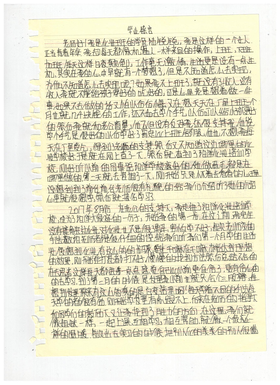 當(dāng)前位置:樂清市陽洋職業(yè)技能培訓(xùn)學(xué)校 » 學(xué)員感悟陸銳銳同學(xué)畢業(yè)感言發(fā)布時間:2018-10-23 10:40:55瀏覽次數(shù):1960 |