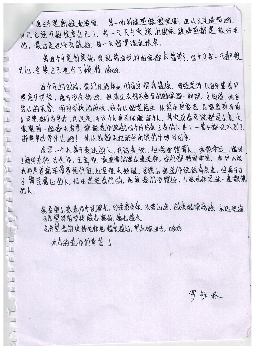 當前位置:樂清市陽洋職業(yè)技能培訓學校 » 學員感悟羅鈺秋同學畢業(yè)感言發(fā)布時間:2018-10-23 10:46:54瀏覽次數(shù):1957 |
