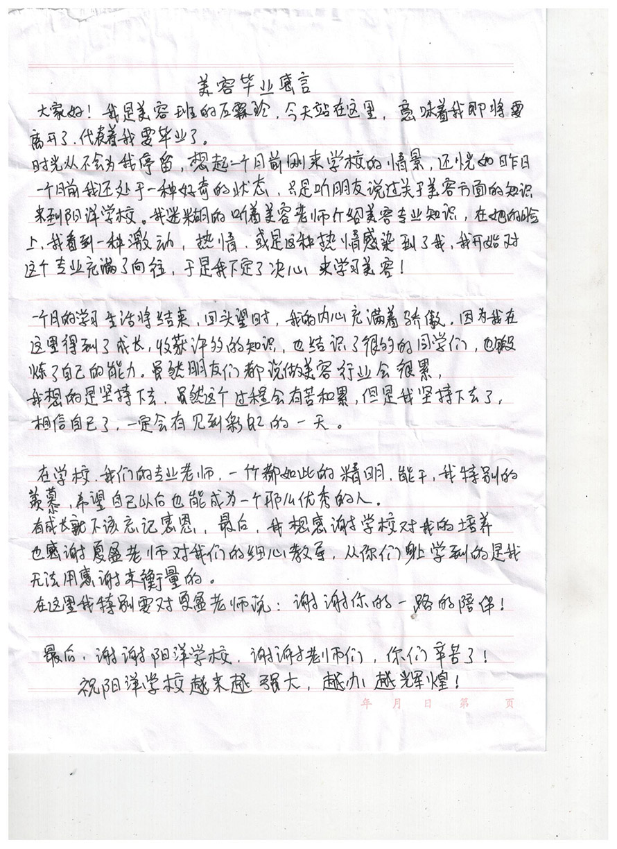 當(dāng)前位置:樂(lè)清市陽(yáng)洋職業(yè)技能培訓(xùn)學(xué)校 » 學(xué)員感悟石霖玲美容畢業(yè)感言發(fā)布時(shí)間:2019-9-17 15:43:54瀏覽次數(shù):1960 |
