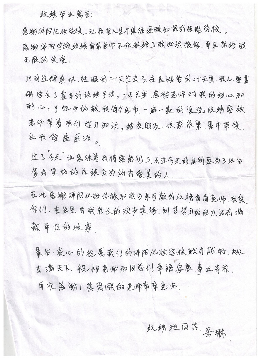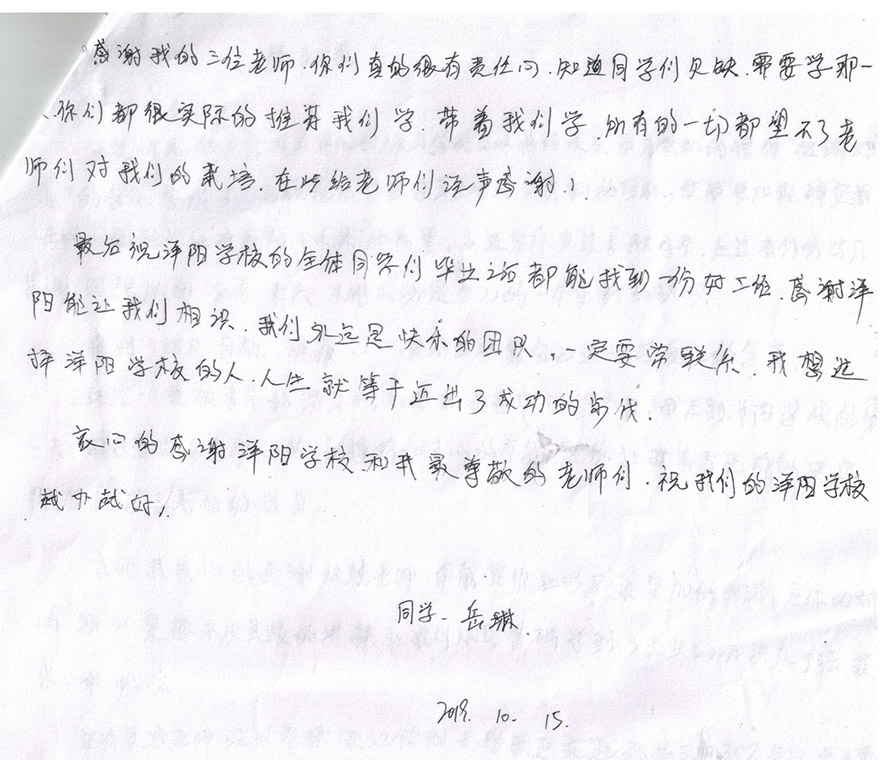 當(dāng)前位置:樂清市陽洋職業(yè)技能培訓(xùn)學(xué)校 » 學(xué)員感悟岳琳同學(xué)畢業(yè)感言發(fā)布時間:2019-10-14 14:30:00瀏覽次數(shù):1961 |