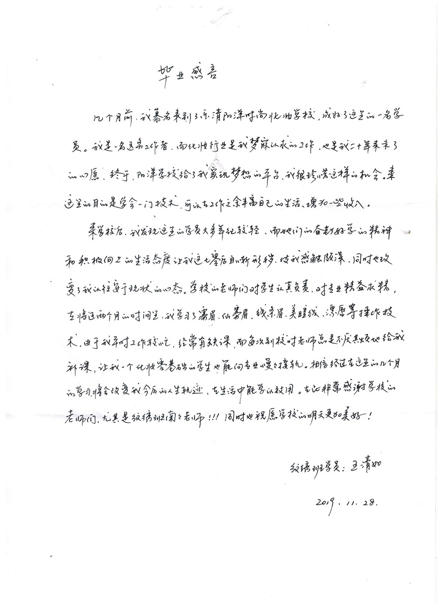 當(dāng)前位置:樂(lè)清市陽(yáng)洋職業(yè)技能培訓(xùn)學(xué)校 » 學(xué)員感悟王清如紋繡畢業(yè)感言發(fā)布時(shí)間:2019-12-2 14:08:03瀏覽次數(shù):1960 |