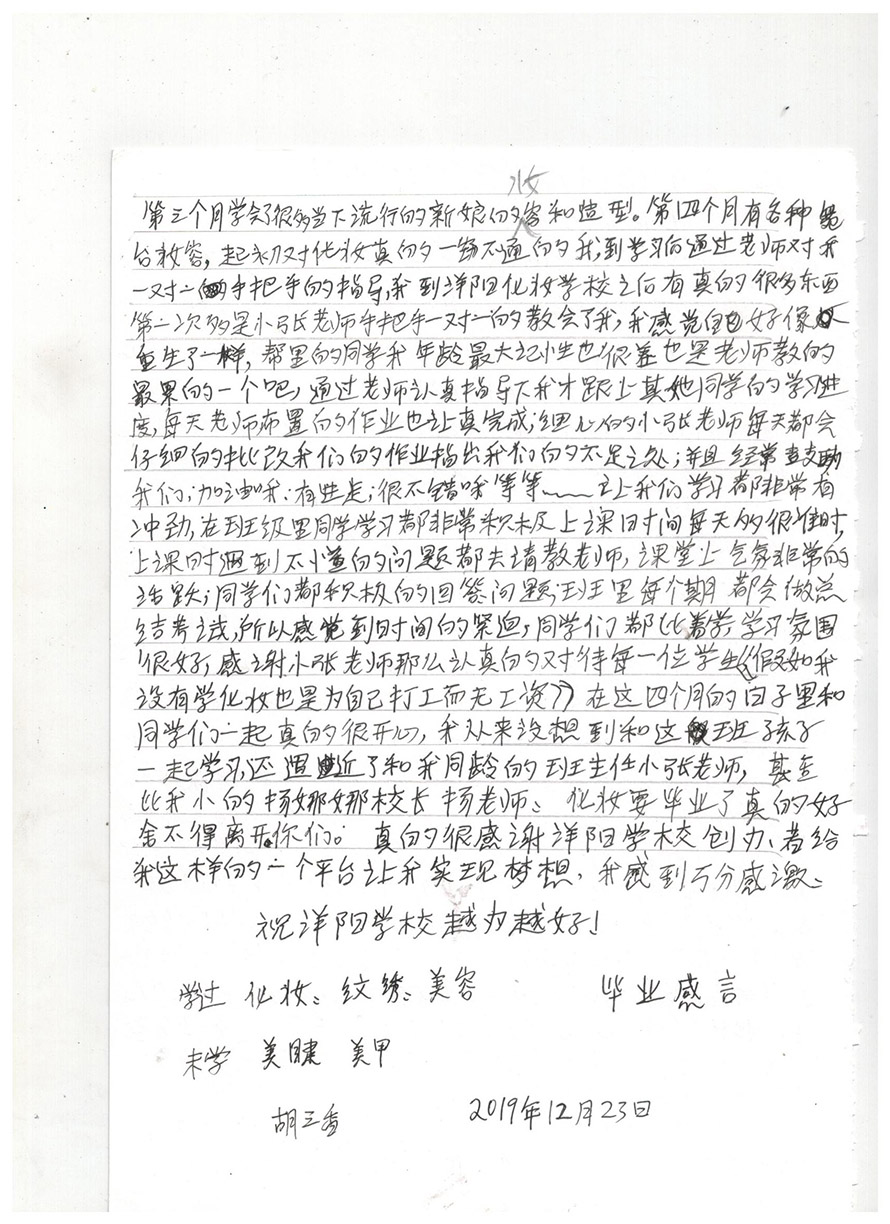 當(dāng)前位置:樂清市陽洋職業(yè)技能培訓(xùn)學(xué)校 » 學(xué)員感悟胡三香畢業(yè)感言發(fā)布時間:2019-12-24 13:30:37瀏覽次數(shù):1958 |
