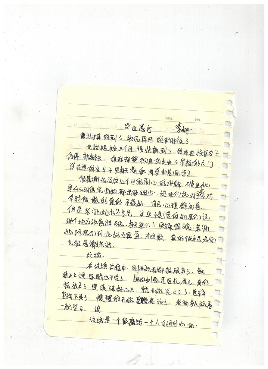 當(dāng)前位置:樂清市陽洋職業(yè)技能培訓(xùn)學(xué)校 » 學(xué)員感悟李?yuàn)櫘厴I(yè)感言發(fā)布時(shí)間:2020-1-13 14:50:18瀏覽次數(shù):1958 |