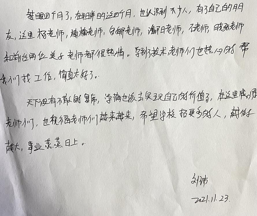 當前位置:樂清市陽洋職業(yè)技能培訓學校 » 學員感悟劉沛畢業(yè)感言發(fā)布時間:2021-12-24 14:51:11瀏覽次數:1984 |