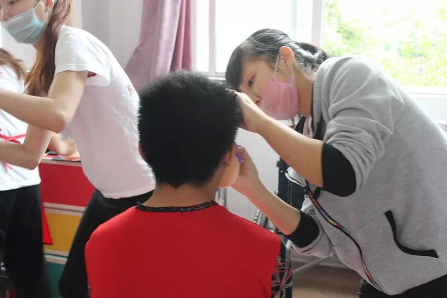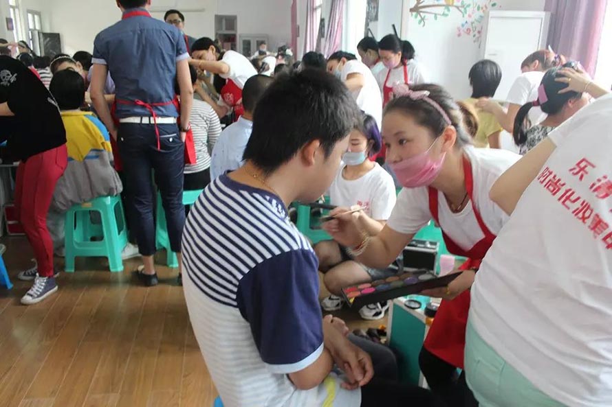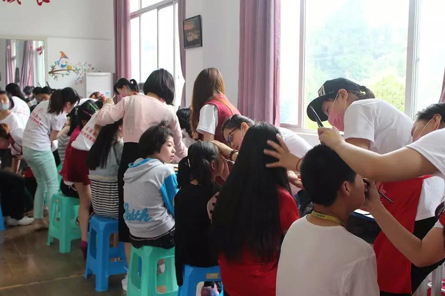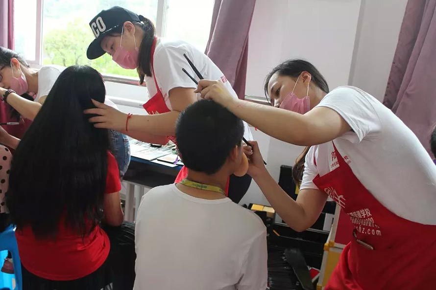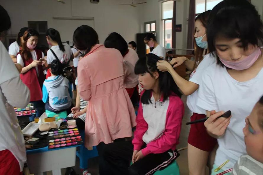 樂(lè)清陽(yáng)洋化妝學(xué)校應(yīng)樂(lè)清市特殊學(xué)校邀請(qǐng)為演員化妝,我校感到很榮幸!給那些特殊學(xué)校里特別需要幫助的同學(xué)們,讓他們能更美的出演活動(dòng)。你們很可愛(ài),但是你們更棒!我相信你們的明天會(huì)更美!還有我們學(xué)校的化妝師也辛苦了!一大早過(guò)來(lái)給她們化的美美的妝!看到她們美美的笑容~化妝師們?cè)倮垡仓档?!去的學(xué)生也是妝畫得非常棒 舞臺(tái)效果非常好,給演出增添了漂亮的一筆!感謝樂(lè)清特殊學(xué)校給了我們學(xué)生這么好的機(jī)會(huì)!看看他們的化妝過(guò)程和舞臺(tái)效果吧。