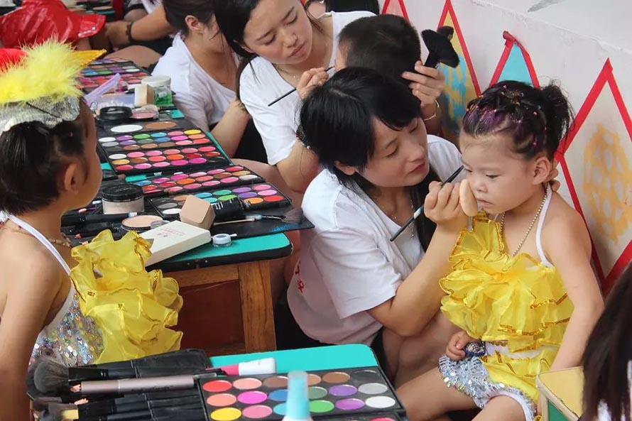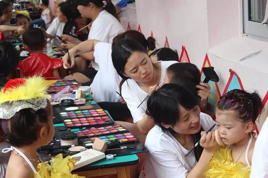 2015年陽(yáng)洋時(shí)尚化妝美甲學(xué)校擔(dān)任樂清東山南幼兒園文藝演出化妝造型。
