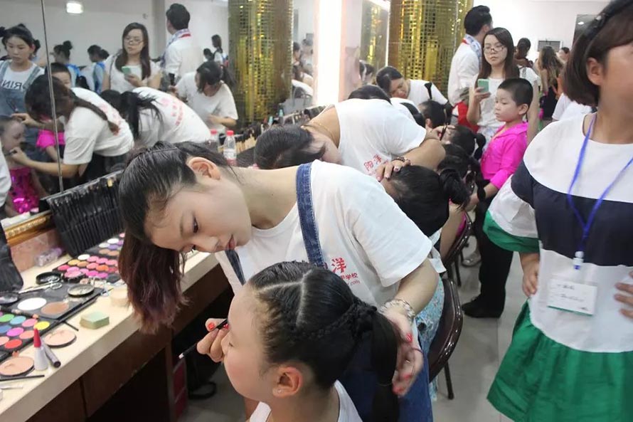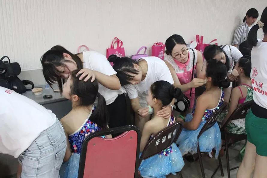 柳市蕾絲舞蹈演出圓滿成功~~化妝現(xiàn)場如此多的人~今天雖然演員有500多人~我們只用了5個小時妝面和發(fā)型基本全部搞定~雖然很忙碌~但是今天化妝現(xiàn)場次序特別好~一點不亂~老師們管理特別好舞臺上的每一位可愛的演員們都是我們學校的化妝師一個下午的勞動成果~各種各樣的妝都有~主要有戲曲妝,歐式妝~倒勾妝~球體眼妝~炫彩煙熏妝等~爵士舞蹈妝~拉丁舞妝~芭蕾舞妝等~28號白象蕾絲舞蹈~30號柳市蕾絲舞蹈~一起一共1000多個舞蹈者是有的~28號那天學生跟妝7點回家~30號跟妝9點回家~感謝蕾絲舞蹈老師對我們的信任~感謝我們陽洋化妝學校的每一位化妝講師~感謝我可愛的同學們~大家都很愛實習~每次實習進步都特別大~速度也很快~努力了一定會有收獲哦~~~
