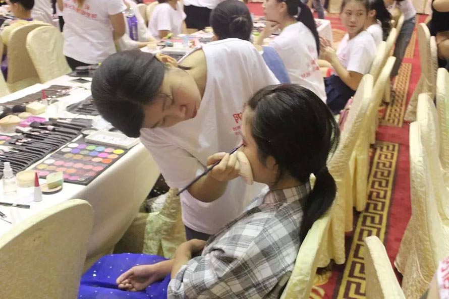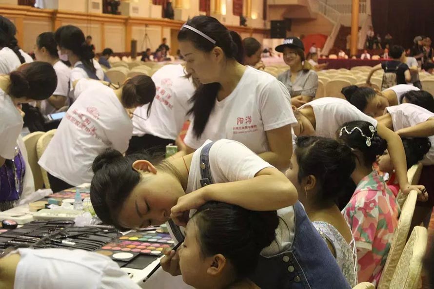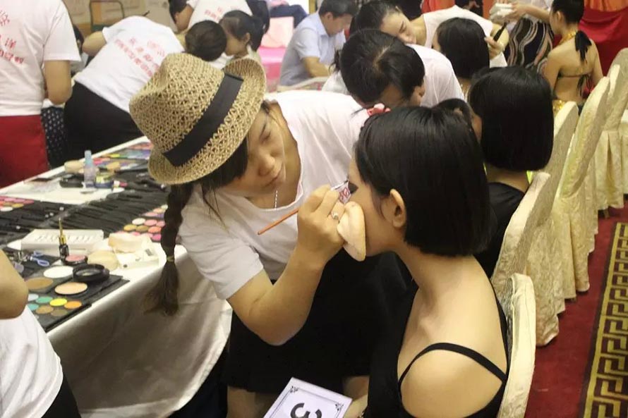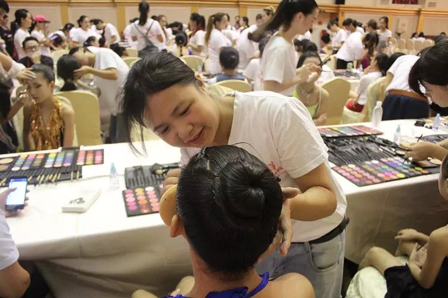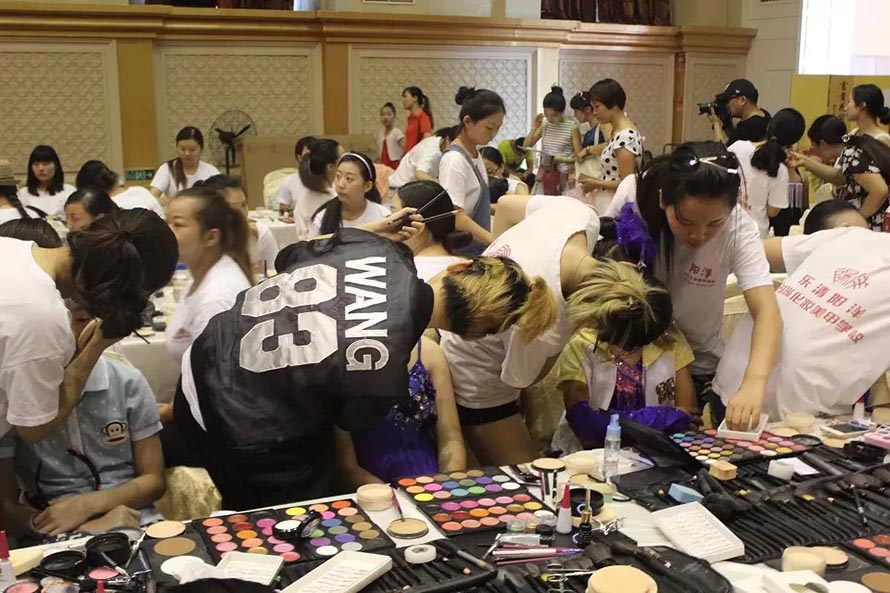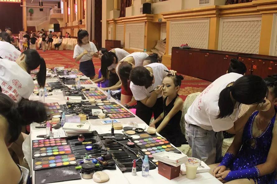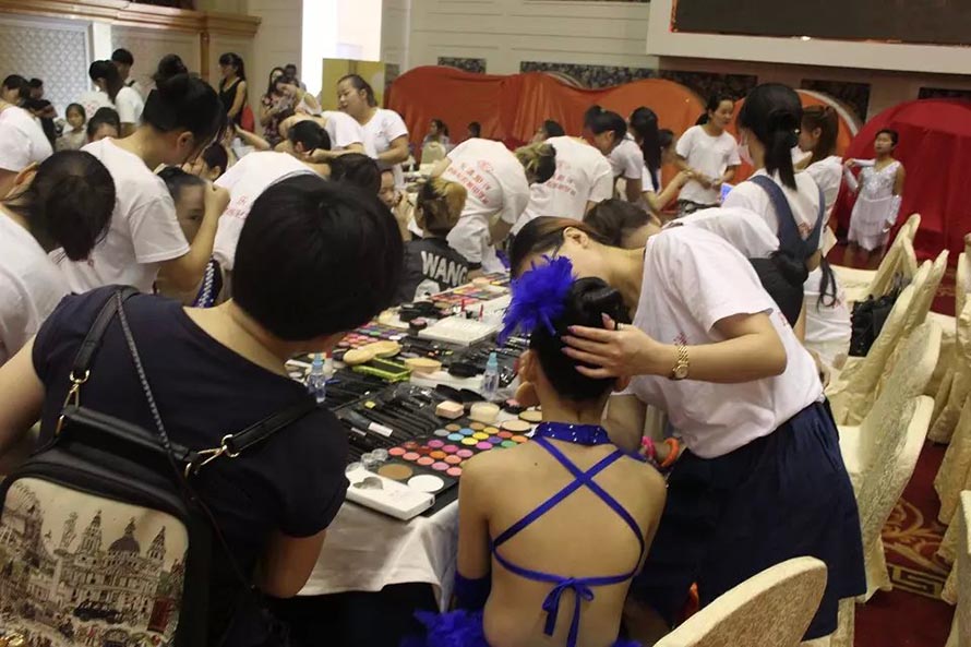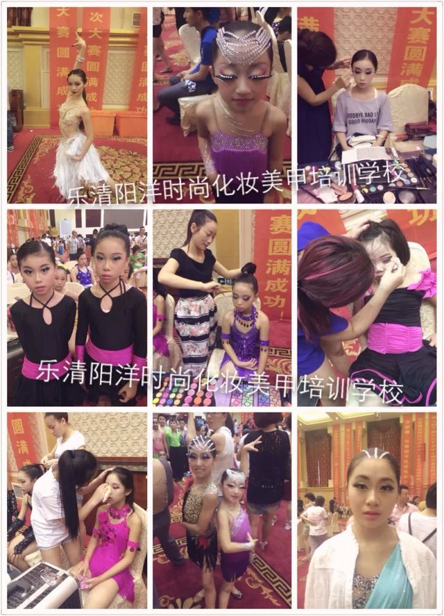 樂清陽洋時尚化妝美甲學校才學一個多月的學員們面對800多人的化妝 ,運用在校所學到的化妝技術和最扎實的化妝基本功,化出一個個精美的妝面,得到了很多家長的贊賞和參賽選手的喜愛。最短才學十來天的學生們跟著大班學生實習 ,學員們的青春有著朝氣蓬勃的氣息,對化妝的熱忱。本次全國體育舞蹈邀請賽讓學員充分的得到了充分鍛煉和展示。 樂清陽洋時尚化妝美甲學校是溫州地區(qū)中最專業(yè)最權威的一所培訓學校。陽洋從不以浮夸的辭藻來標榜,實實在在的教好每位學生是我們一貫的宗旨,讓無數(shù)學員在這里成長,從這里張開理想的翅膀,成就了自己的事業(yè),也實現(xiàn)了自己的人生價值。 下面我們一共欣賞比賽的花絮,一共親臨那激動人心的比賽現(xiàn)場。