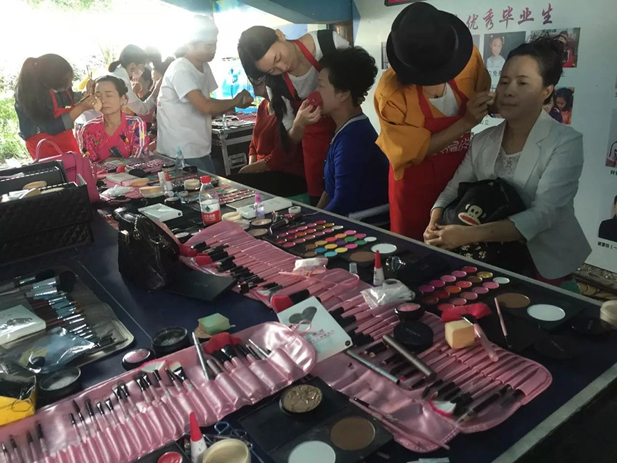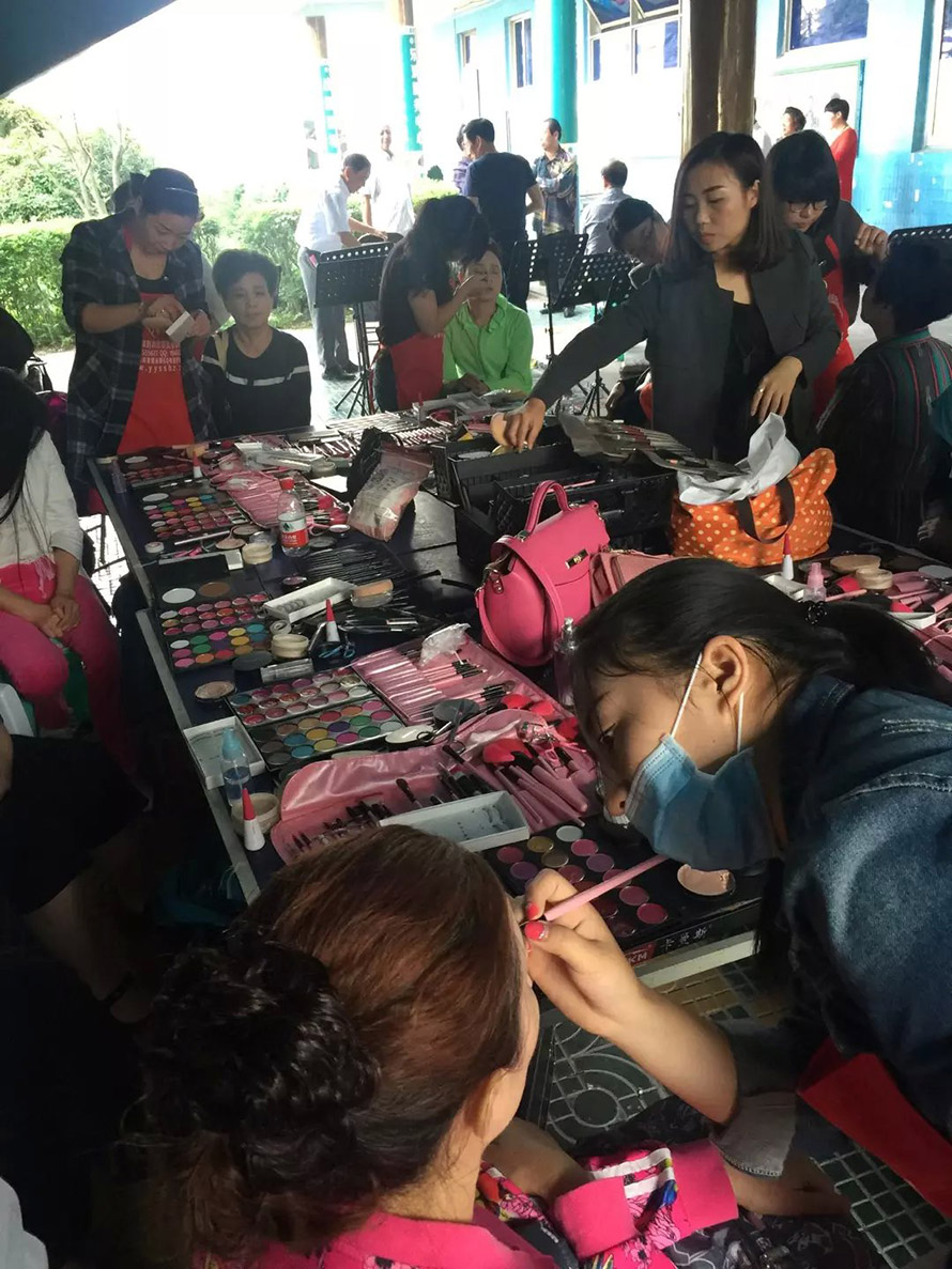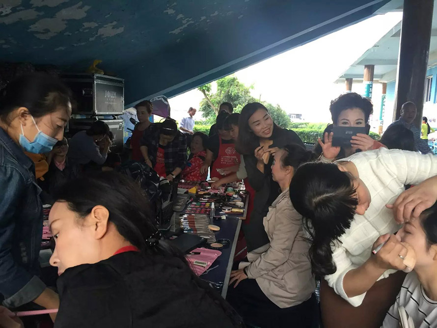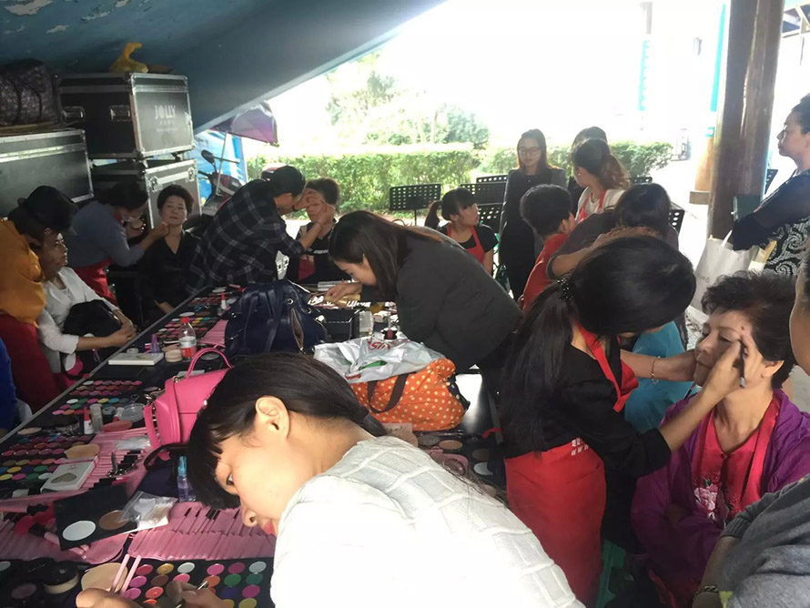 樂清陽洋時尚化妝美甲學(xué)校為樂清百姓舞臺演出化妝,同學(xué)們都非常認(rèn)真為每一位演出人員化妝,根據(jù)演出風(fēng)格和服裝設(shè)計造型,做到妝面精致不俗艷,大氣不張揚(yáng),舞臺效果好 實(shí)現(xiàn)每一個細(xì)節(jié)都體現(xiàn)人性化,此次化妝工作受到活動單位和表演者的大力好評。很快就順利地完成了演員們的化妝造型。經(jīng)歷多次的現(xiàn)場化妝活動后,同學(xué)們發(fā)現(xiàn)自己的膽量和技能真的是有大步提高了!