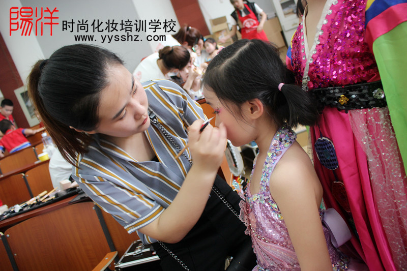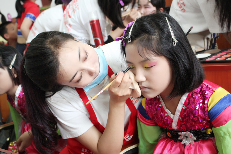 參加此次活動的公派化妝師 化妝新班一班,二班,三班為此次活動提供化妝造型服務,樂清陽洋化妝培訓學校的學員一到現(xiàn)場,便馬不停蹄地開始緊張有序地工作,各施所長,給等待上妝的孩子們精心打造完美的妝容,讓孩子以一種最美的姿態(tài)展示于現(xiàn)場。