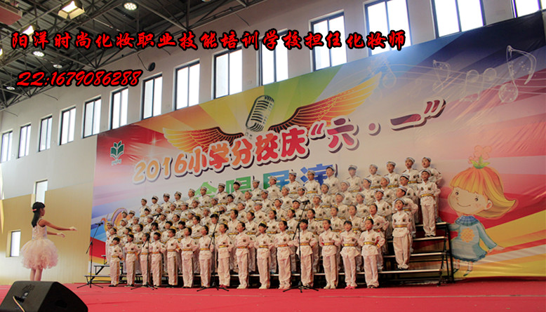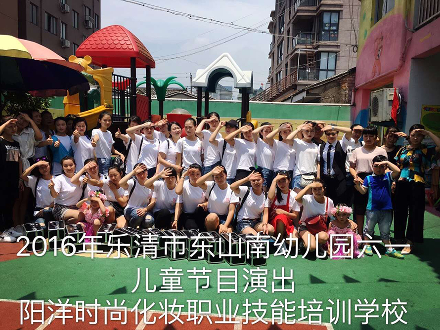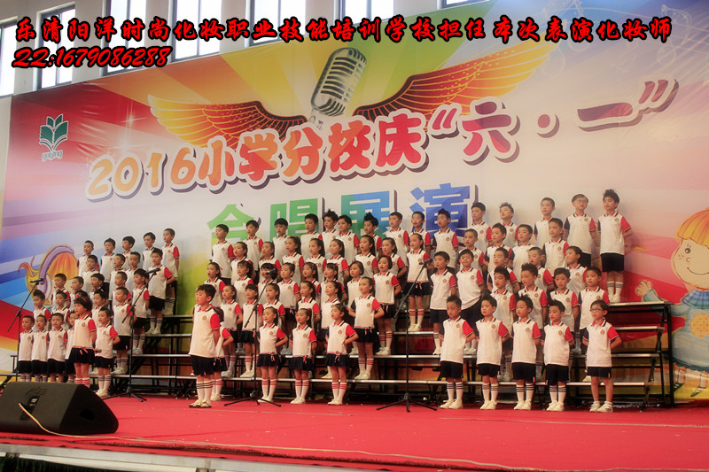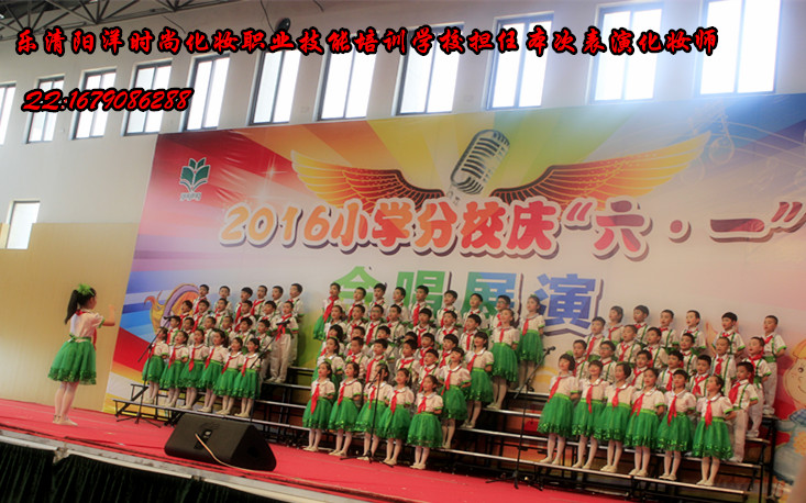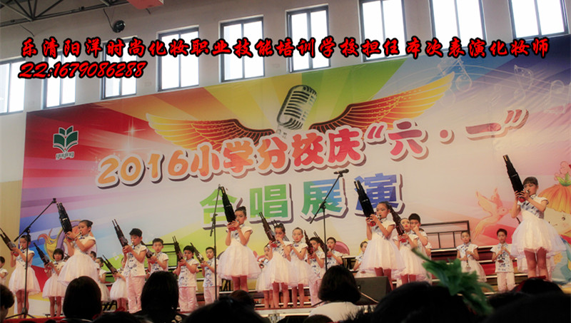 樂清陽洋時尚化妝職業(yè)技能培訓學校一天擔任幾所學校六一表演化妝師!