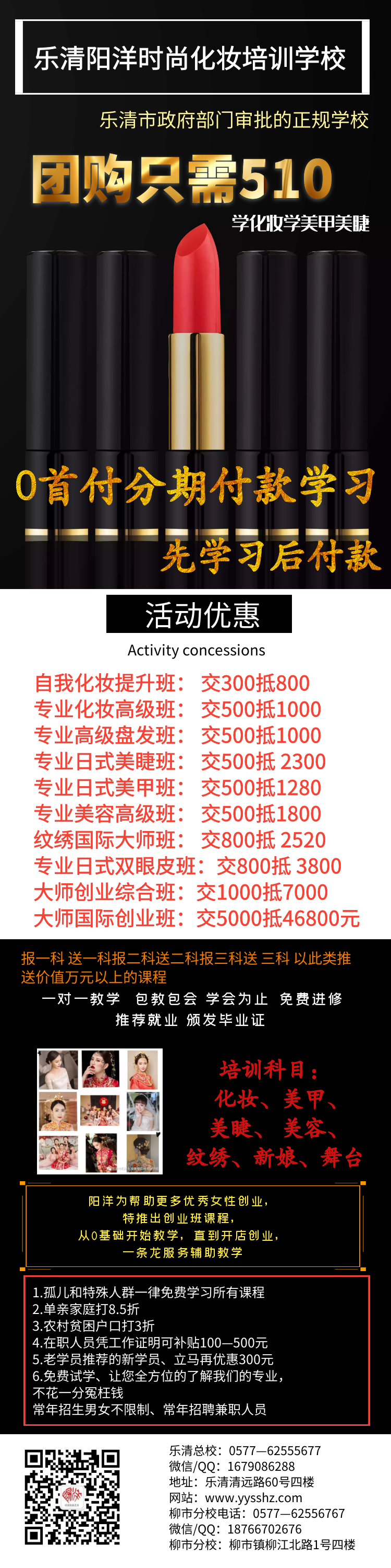 - 樂(lè)清陽(yáng)洋化妝培訓(xùn)學(xué)校喊你來(lái)砸金啦!你還在等什么?