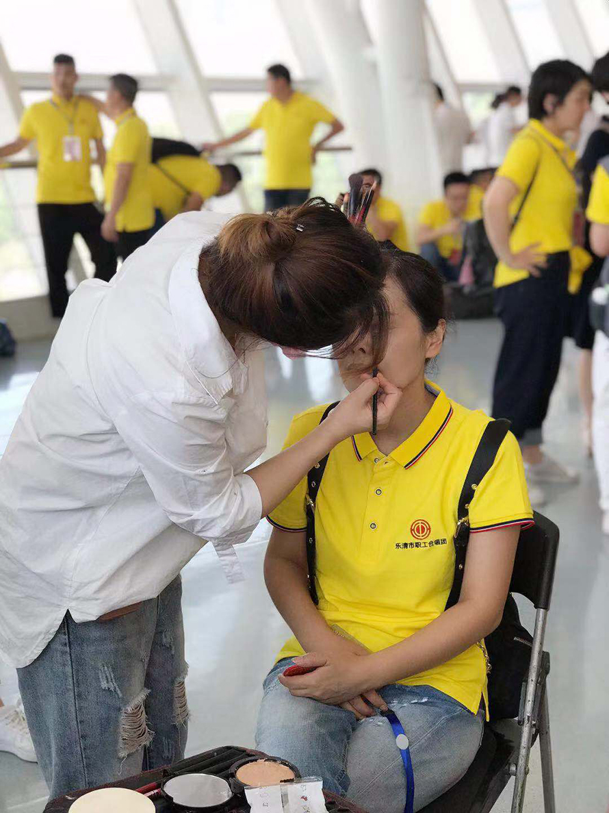 陽(yáng)洋化妝學(xué)校是樂清一家正規(guī)化妝培訓(xùn)學(xué)校 在校學(xué)習(xí)的學(xué)生經(jīng)過一段學(xué)習(xí)學(xué)校都會(huì)安排外出實(shí)踐化妝的機(jī)會(huì) 這次老師帶著個(gè)別十位學(xué)生到達(dá)溫州市“體育館” 擔(dān)任溫州市慶祝新中國(guó)成立“70周年”“萬(wàn)人歌詠會(huì)”總化妝師!