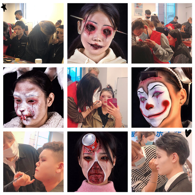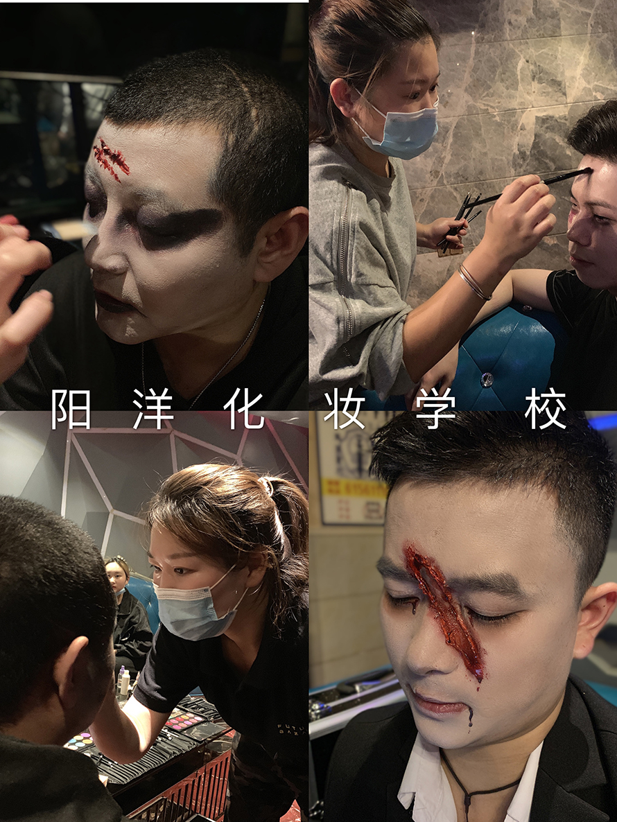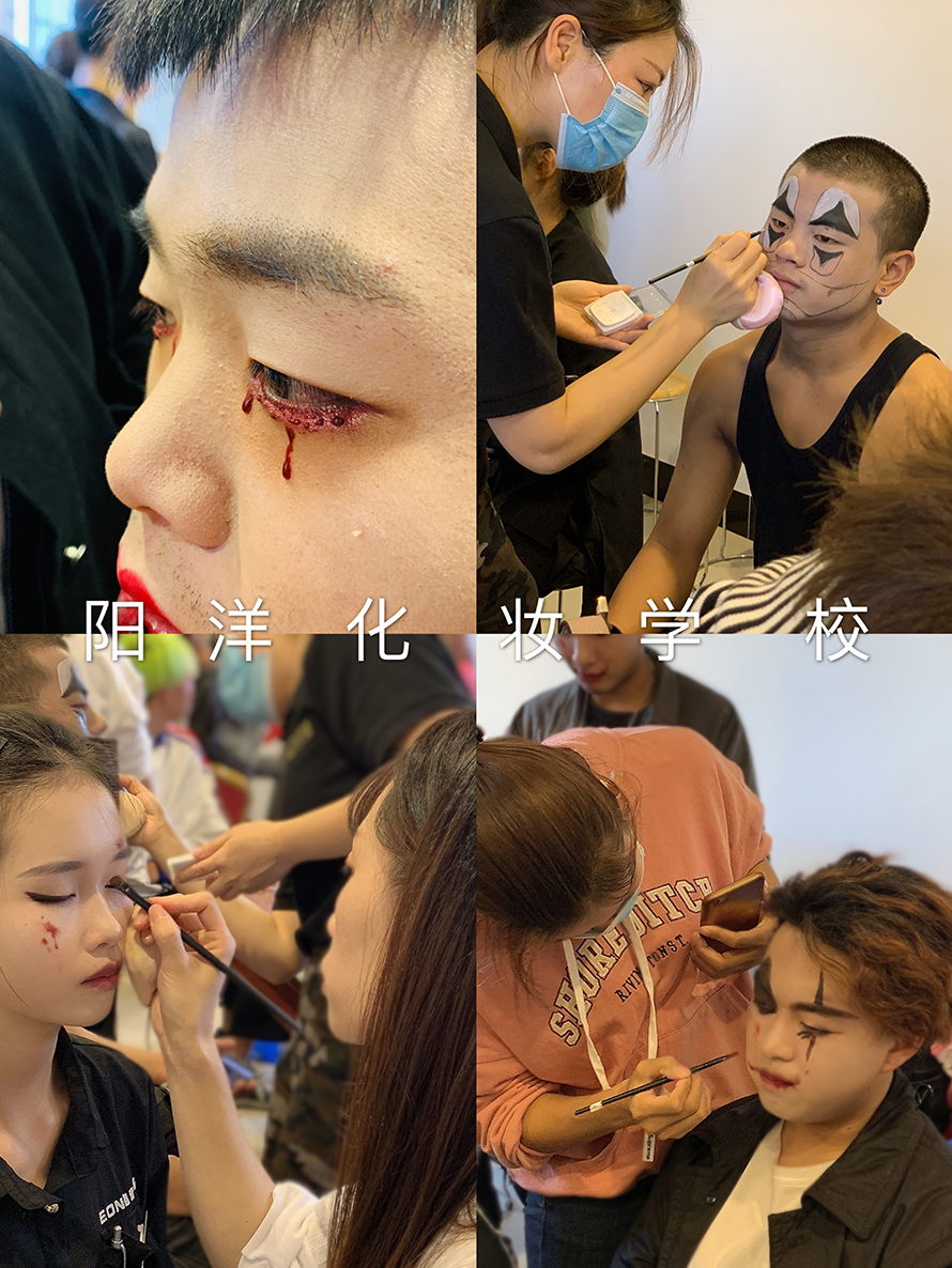萬圣節(jié)是西方的傳統(tǒng)節(jié)日,日期是在公歷每年的11月1日。萬圣節(jié)前夜10月31日是這個節(jié)日最熱鬧的時刻。傳說這一晚,各種鬼怪也會裝扮來搗蛋一起慶祝萬圣節(jié)。 同學把老師教的骷髏妝,哥特妝,特效特效妝都用到了萬圣節(jié)這天 出去實習的學員都是在校學生,學習時間最長一個月, 學習化妝主要市以實操為主,所以陽洋學校會不定期的安排學員外出實習 ,實習多多進步大大 一天連續(xù)趕好幾場,的確有點小累,大家都說累并快樂著, 實習然我們進步很快,實習是落地最快的學習方法。
