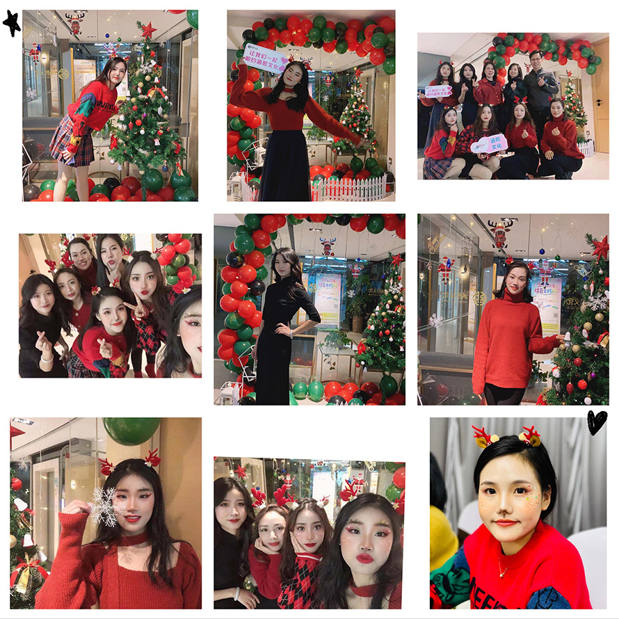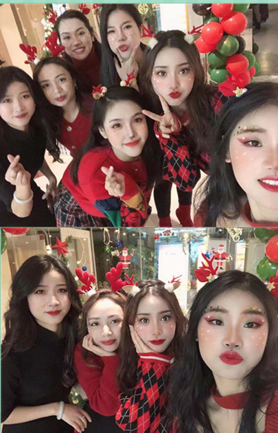 是不是很美?哈哈~知道你們一定沒看夠,不急不急,讓我們再來一起看看姑娘們的大合照。這次的圣誕派對妝容,姑娘們?nèi)挤浅M意。一直說我們陽洋的團隊老師太厲害了,簡直是巧手小魔仙呢。