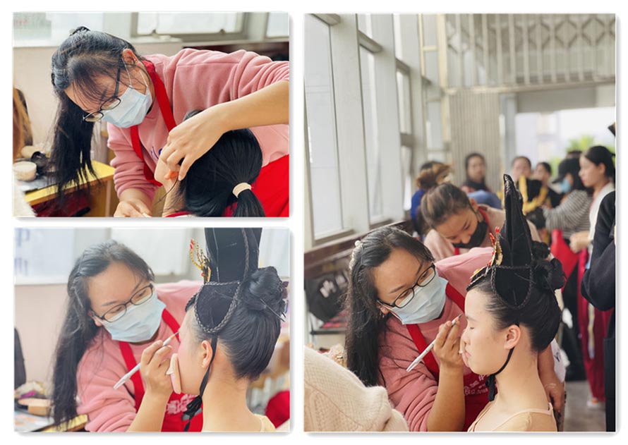 眾所周知,我們學(xué)習(xí)化妝最離不開的就是實(shí)踐了。而我們陽洋化妝學(xué)校的學(xué)員,在學(xué)習(xí)理論基礎(chǔ)+實(shí)操課程,有了一定的專業(yè)基本功以后,團(tuán)隊老師再帶領(lǐng)學(xué)員一起外出實(shí)習(xí),讓學(xué)員更快扎實(shí)學(xué)習(xí)內(nèi)容,穩(wěn)固化妝手法。此次由樂清市重點(diǎn)高中樂清中學(xué)舉辦的元旦文藝匯演,舉辦方特邀我們陽洋化妝學(xué)校擔(dān)任本次演出的全程化妝造型指導(dǎo)。下面,請大家跟小編一起去看下當(dāng)天的熱鬧場面吧~