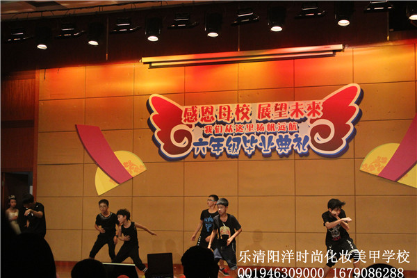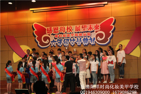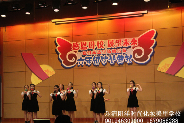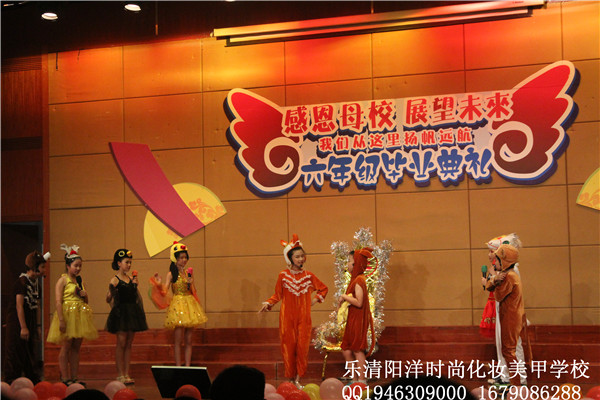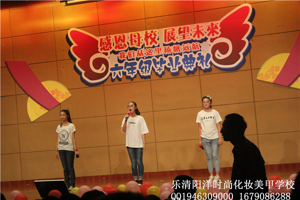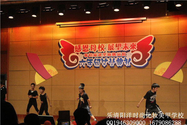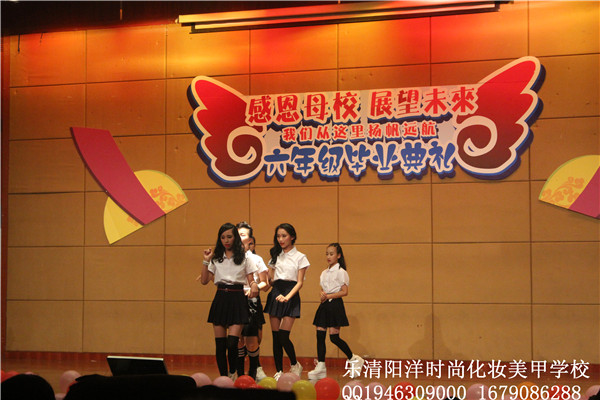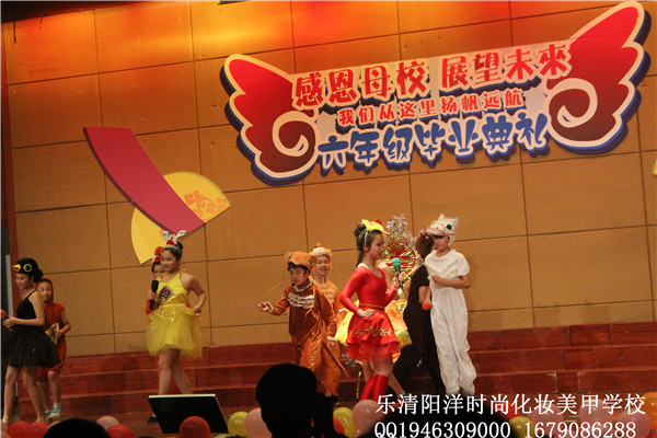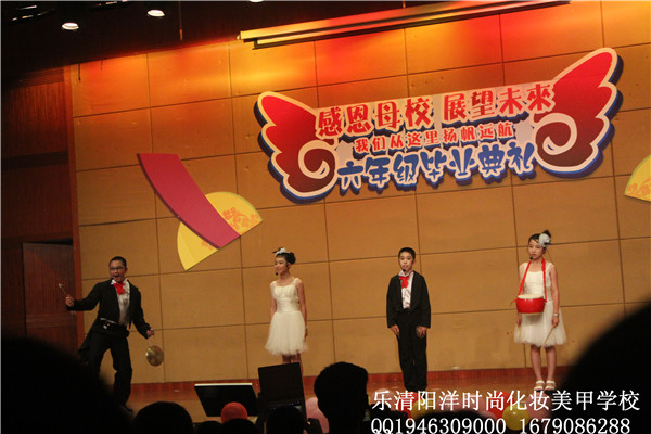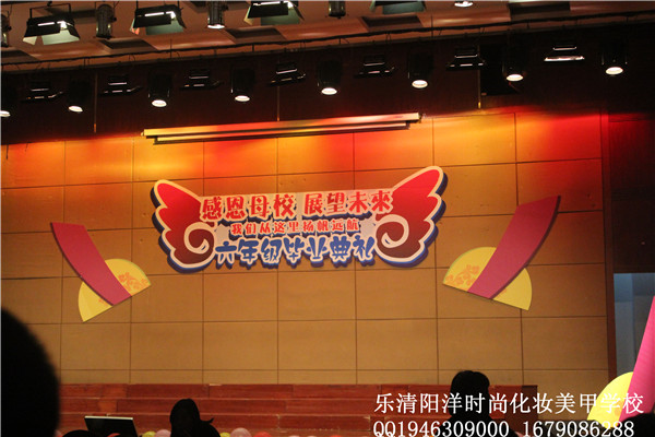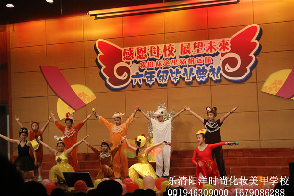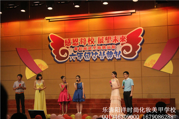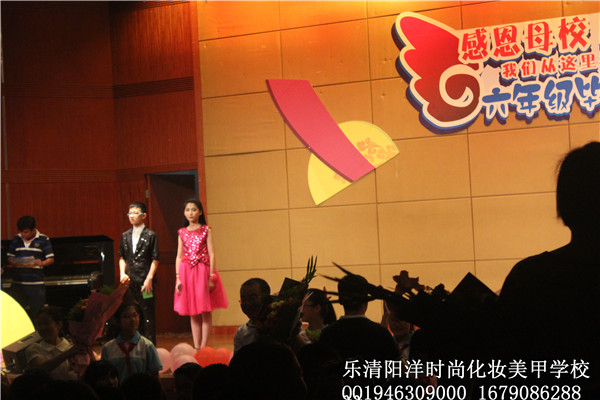 2013年5月26日,樂(lè)清外國(guó)語(yǔ)學(xué)校“感恩母校展望未來(lái) 六年級(jí)畢業(yè)典禮”隆重舉行,樂(lè)清陽(yáng)洋時(shí)尚化妝美甲學(xué)校的專業(yè)學(xué)員應(yīng)邀擔(dān)任此次活動(dòng)的化妝造型工作,承擔(dān)了活動(dòng)主持人、形象大使、以及節(jié)目表演者整體形象設(shè)計(jì)。整場(chǎng)化妝造型工作持續(xù)2個(gè)多小時(shí),并受到了外國(guó)語(yǔ)學(xué)校的領(lǐng)導(dǎo)、嘉賓、及師生的廣泛好評(píng)