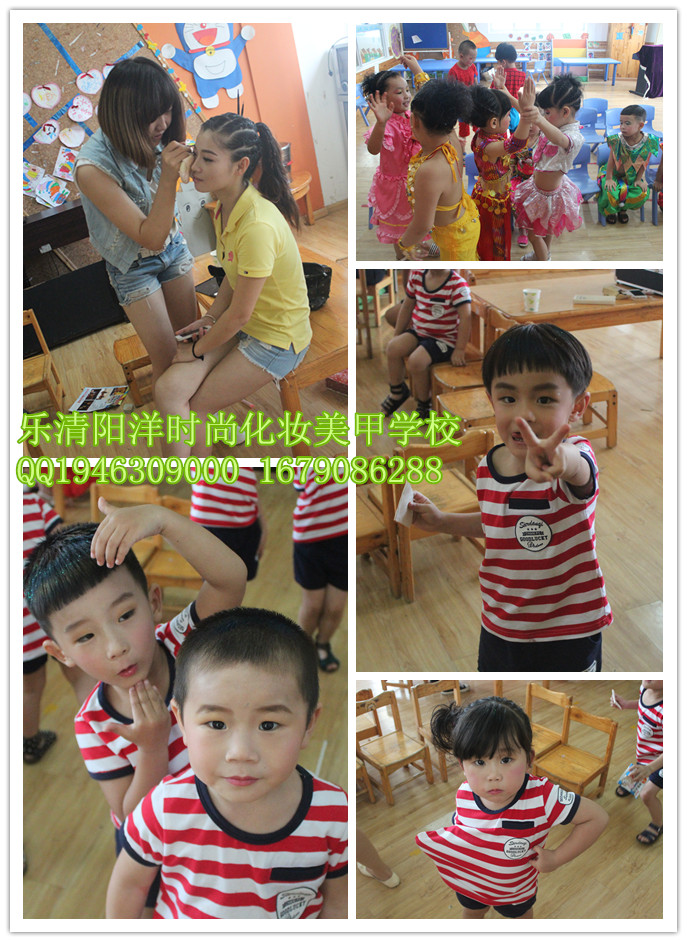 2014年6月26日下午,樂(lè)清金太陽(yáng)幼兒園畢業(yè)文藝匯演在樂(lè)清劇院隆重舉行。樂(lè)清陽(yáng)洋時(shí)尚化妝美甲學(xué)校受邀成為“ ”指定造型機(jī)構(gòu), 隨著即將展開(kāi)的演出,樂(lè)清陽(yáng)洋時(shí)尚化妝美甲學(xué)校的學(xué)員于下午到達(dá),每個(gè)學(xué)員都洋溢著滿臉幸福和快樂(lè)的笑容,本次活動(dòng)讓學(xué)員把在校所學(xué)技術(shù)學(xué)以致用。一下午的激戰(zhàn)讓學(xué)員們的應(yīng)變能力和化妝速度都有所提升。來(lái)看看我們的花絮照片吧