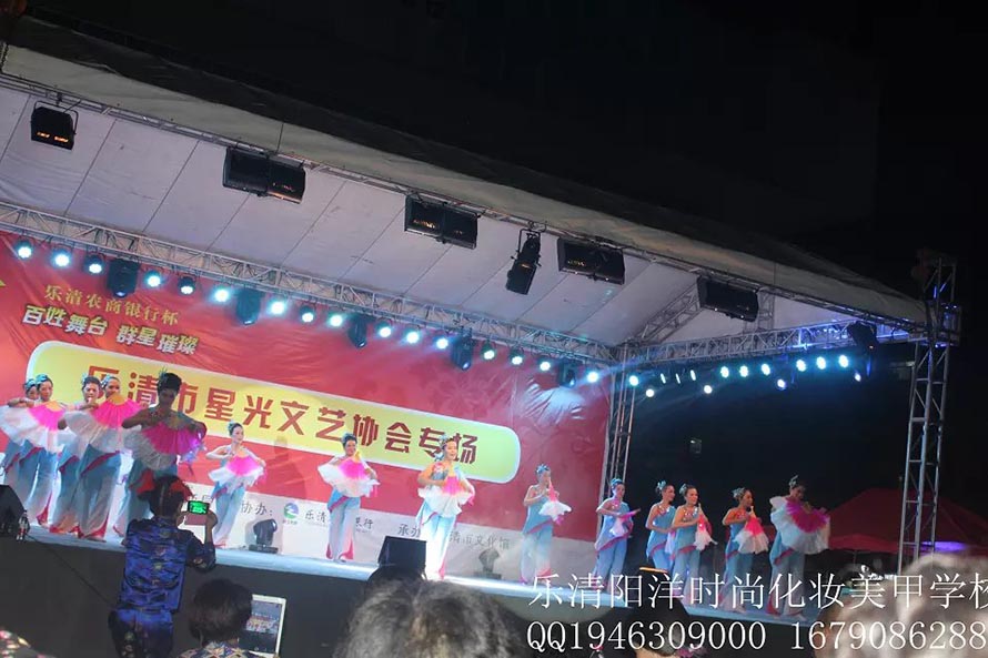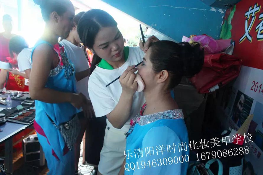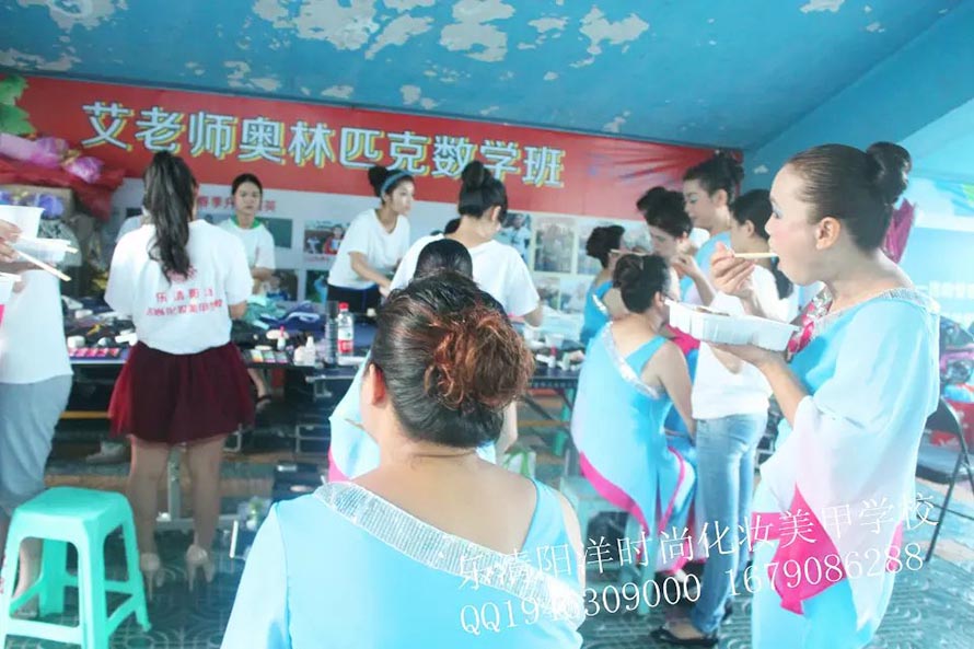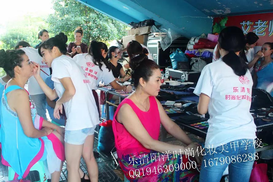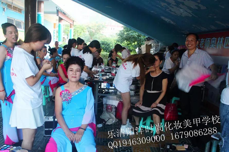 2014年9月23日下午。樂清陽洋時(shí)尚化妝美甲學(xué)校接到樂清市星光文藝協(xié)會(huì)的邀請(qǐng)為他們的演員化妝造型。學(xué)校的學(xué)生們?cè)诶蠋煄ьI(lǐng)下,精心的為參與演出的每一位成員打造最完美的形象。 在化妝現(xiàn)場(chǎng),每一位演出人員都感受到了職業(yè)化妝師的風(fēng)采,更重要的是讓同學(xué)們?cè)谶@次活動(dòng)中,將平時(shí)所學(xué)的化妝技能運(yùn)動(dòng)到實(shí)踐中,并得到了很好的鍛煉,使同學(xué)們對(duì)今后的學(xué)習(xí)增添了信心,同時(shí),也為今后的工作積攢了寶貴的經(jīng)驗(yàn)。