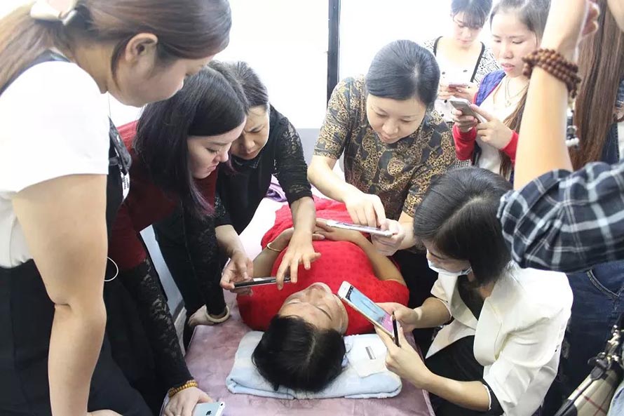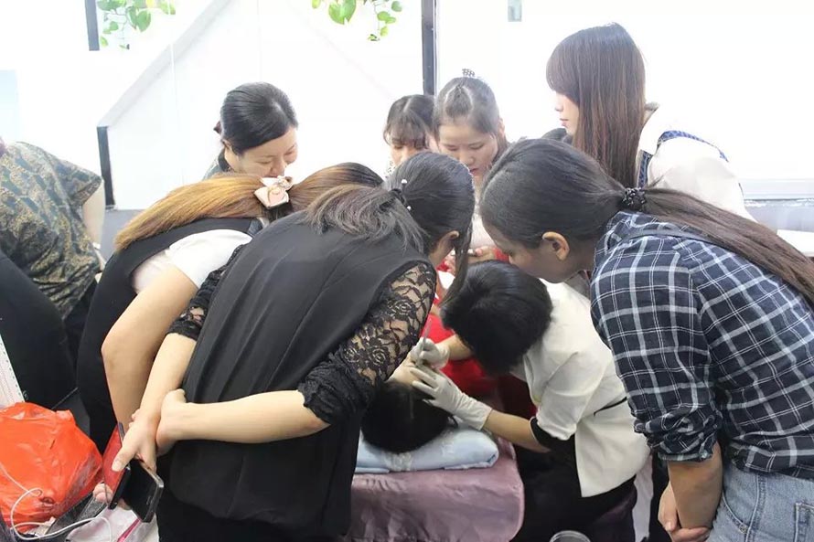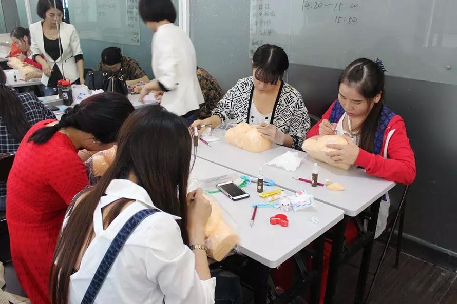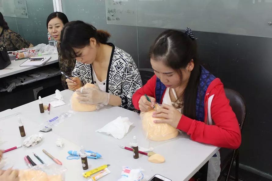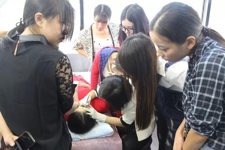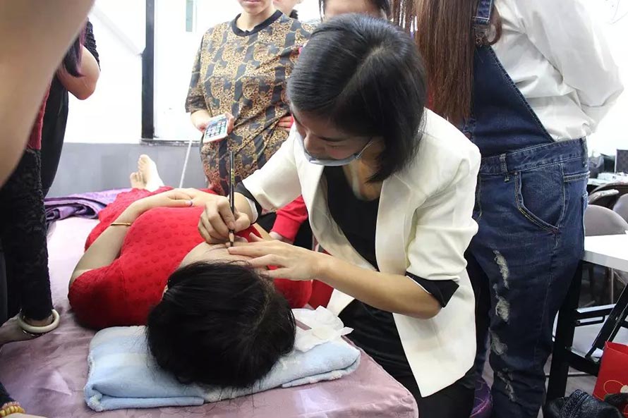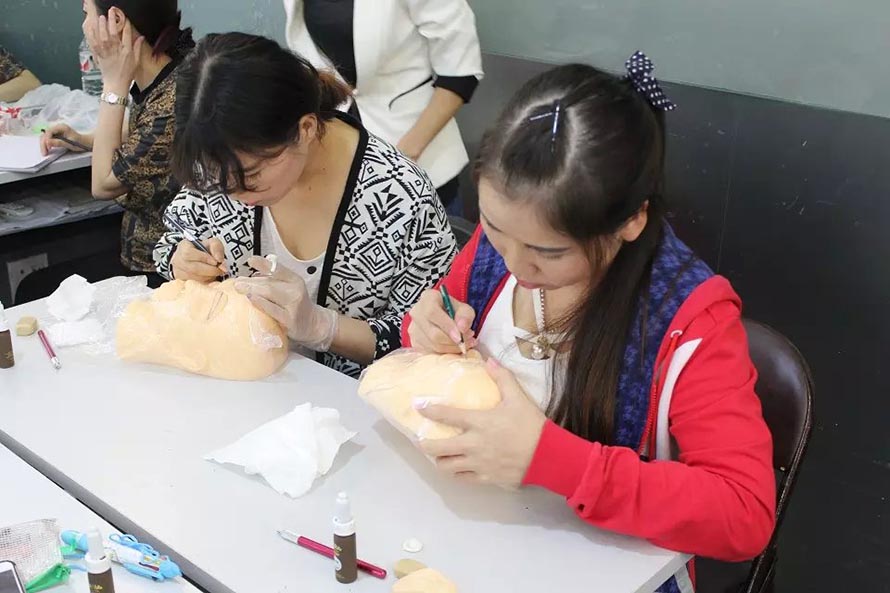 樂(lè)清陽(yáng)洋時(shí)尚化妝技能培訓(xùn)學(xué)校紋繡課堂實(shí)況——昨日紋繡班學(xué)員們昨日開(kāi)始了第一次上手實(shí)操訓(xùn)練的階段,真人實(shí)操老師示范過(guò)后, 同學(xué)們先用模型頭進(jìn)行練習(xí),老師在旁邊指導(dǎo)把關(guān)。學(xué)員們第一次的處女秀的作品成績(jī)表現(xiàn)得非常不錯(cuò),有付出就會(huì)有回報(bào),一起來(lái)看看她們的實(shí)操畫面。