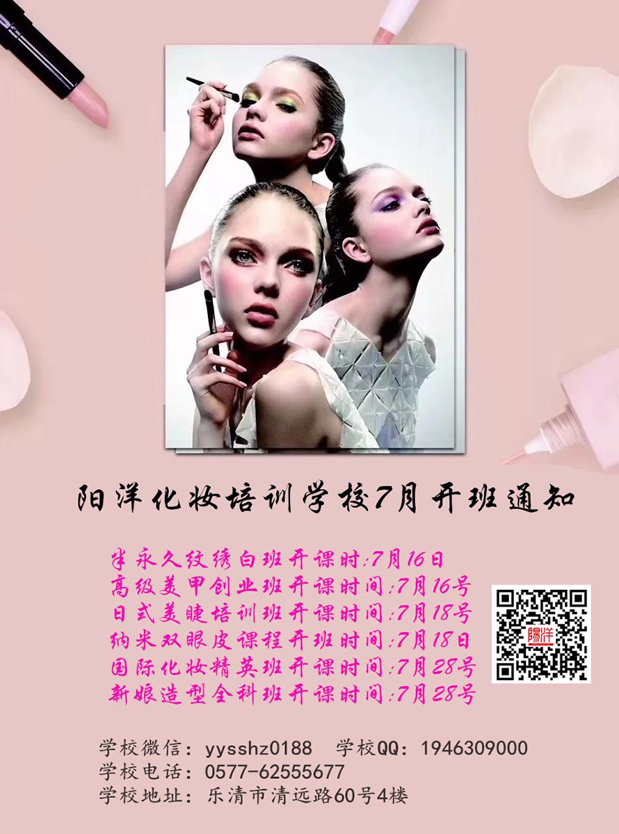 當(dāng)前位置:樂清市陽洋職業(yè)技能培訓(xùn)學(xué)校 » 學(xué)校新聞樂清陽洋化妝學(xué)校暑假開課季到啦!同學(xué)你還在等什么?發(fā)布時間:2018-7-5 17:20:07 瀏覽次數(shù):1966 |