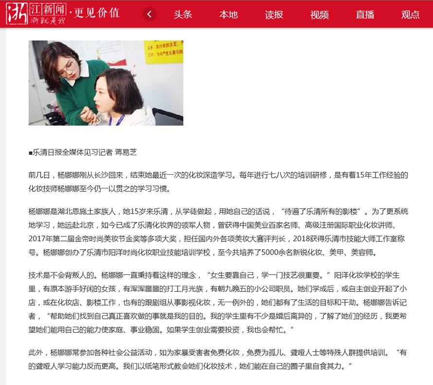 以她專業(yè)的授課模式,專注的化妝技能,2018年評(píng)為“樂清市工匠” “樂清市高級(jí)技能人才 ” “樂清市楊娜娜大師工作室“都是政府部門頒發(fā)給楊娜娜老師榮譽(yù)稱號(hào)。