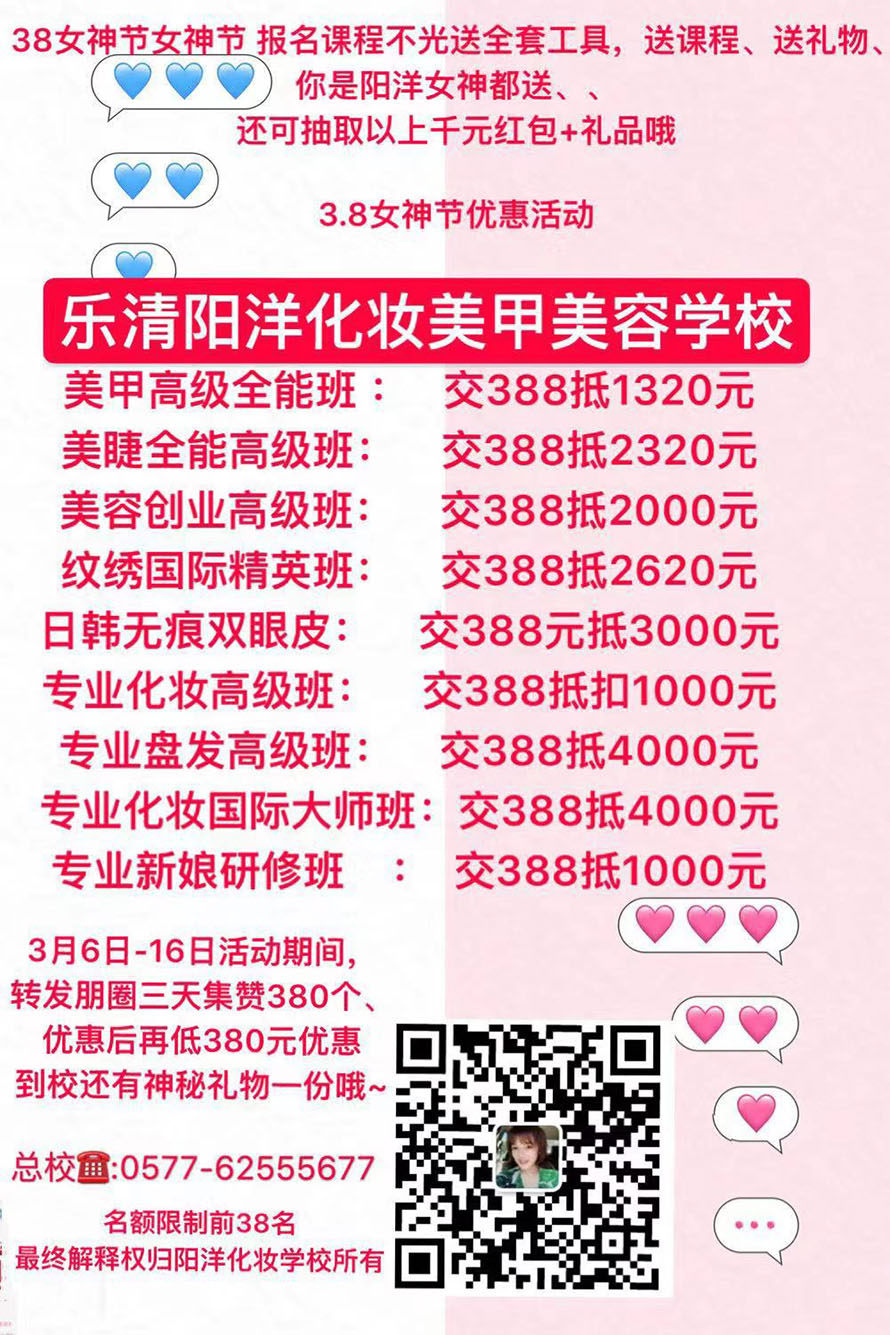 - 樂(lè)清陽(yáng)洋化妝培訓(xùn)學(xué)校喊你來(lái)砸金啦!你還在等什么?