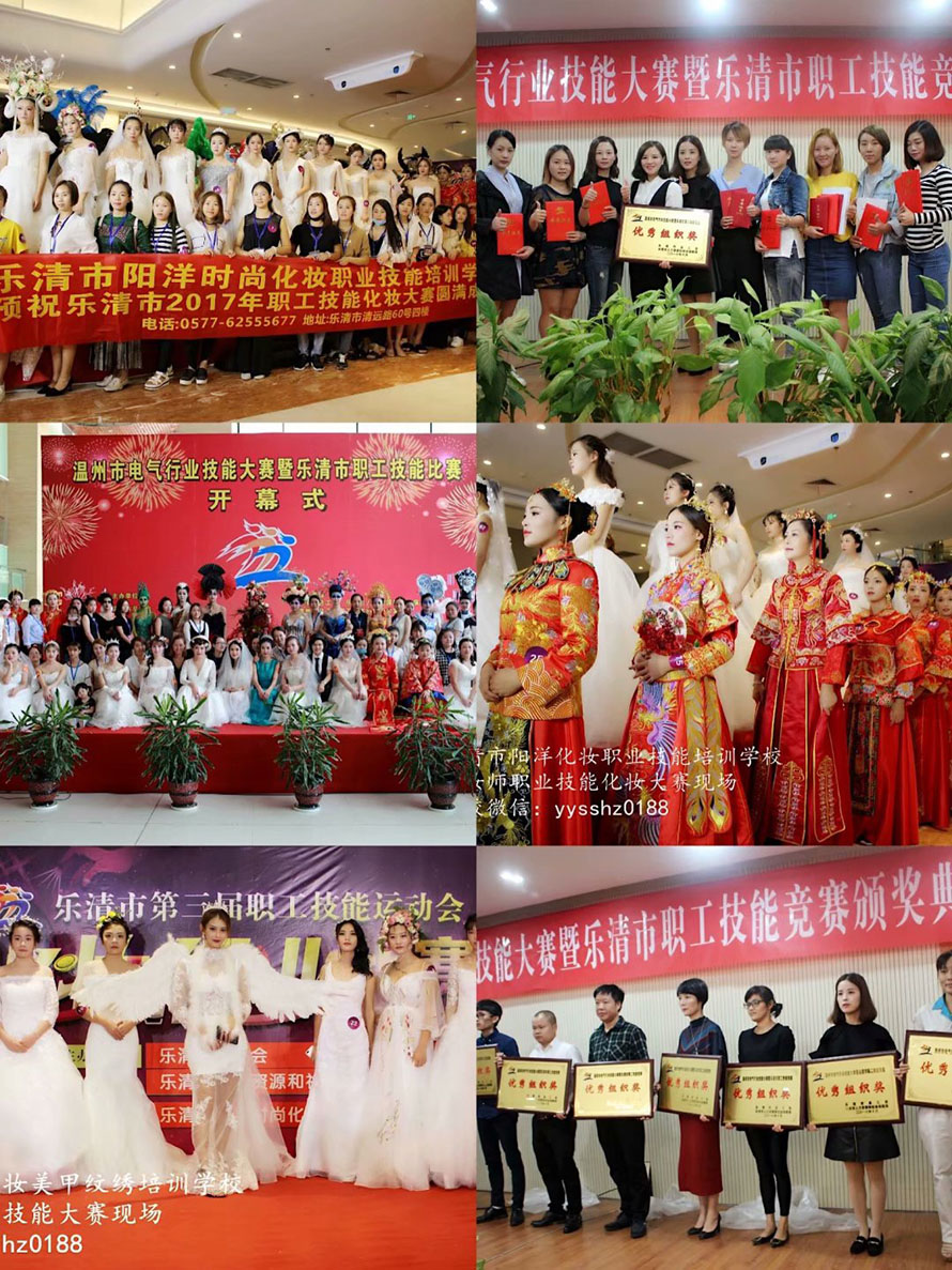 獎項設(shè)有 :一等級、二等獎、三等獎若干名、另設(shè)優(yōu)秀獎若干名、獲得本次大賽大賽第一名的選手由樂清市人力資源和社會保障局、市總工會分別授予 “樂清市技術(shù)能手” “樂清市職業(yè)技能帶頭人”榮譽稱號。 參賽時間為2019年11月21日 參賽地點:南虹廣場 比賽項目:1.新娘妝 2. 時尚創(chuàng)意妝 3.整體創(chuàng)意美甲 4.紋繡眉毛 參賽對象:全市美業(yè)人員、化妝師 、美甲師、紋繡師、均可報名參加本次職工技能競賽。 報名要求:參賽選手提交身份證復印件、兩寸彩照2張、 報名截止日期2019年11月15日 報名地址: 1.市總工會社會工作部(樂清市伯樂東路918號) 聯(lián)系人朱潔潔 電話:61886520 2.樂清市陽洋時尚化妝職業(yè)技能培訓學校 (樂清市清遠路60號四樓) 聯(lián)系人:吳夏瑩 電話:62555677 18958776527 往期大賽花絮