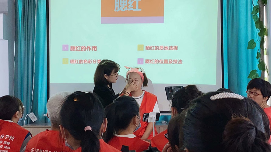 陽洋化妝學(xué)校是樂清 一家獲得政府審批的正規(guī)化妝培訓(xùn)學(xué)校, 至成立以來一致致力于公益事業(yè),秉持著回饋社會(huì)的初心,不斷參加公益活動(dòng), 0費(fèi)用幫助更多殘障人士跟貧困家庭獲得學(xué)習(xí)機(jī)會(huì),了解她們的需求 ,用實(shí)際行動(dòng)成為業(yè)界內(nèi)的典范表率。 在樂清政府的牽線中,我們順利開展了一場殘聯(lián)公益教學(xué),楊娜娜校長親自帶領(lǐng)專業(yè)團(tuán)隊(duì), 用有趣的課程讓學(xué)生了解化妝的力量,在陽洋化妝學(xué)校專業(yè)培訓(xùn)老師的講解下, 學(xué)員們逐漸明白如何化妝的重要性,也懂得了如何恰到好處的給自己化妝。