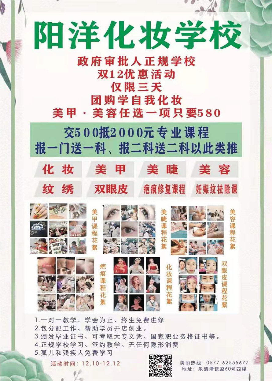- 樂(lè)清陽(yáng)洋化妝培訓(xùn)學(xué)校喊你來(lái)砸金啦!你還在等什么?