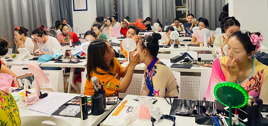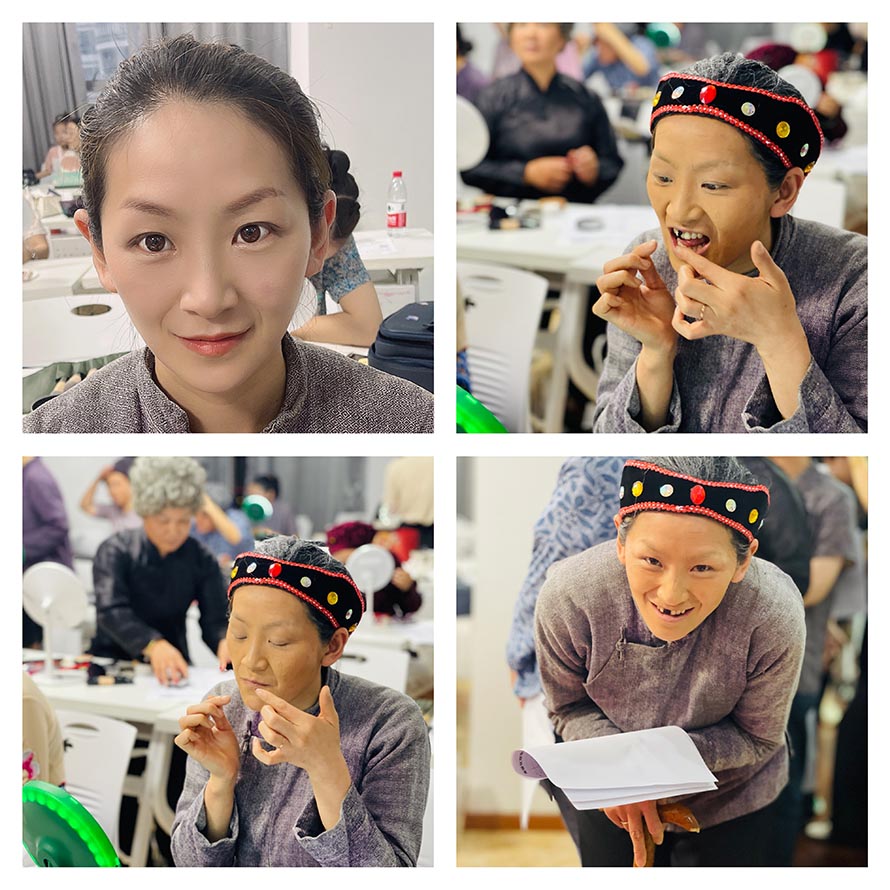 我們學(xué)習(xí)化妝,主要學(xué)習(xí)自我化妝,職業(yè)妝,前幾天學(xué)習(xí)自我化妝,后幾天學(xué)習(xí)舞臺(tái)妝,老年妝,人社局考試要求就是要考試舞臺(tái)妝和老年妝。(圖片是白石婦聯(lián)的負(fù)責(zé)人,也是零基礎(chǔ)的來(lái)學(xué)習(xí),考試當(dāng)天做了舞臺(tái)漢服妝+老年妝,零基礎(chǔ)的她,僅僅學(xué)習(xí)6個(gè)晚上,考試當(dāng)天自己化自己,考評(píng)員夸她很棒哦
