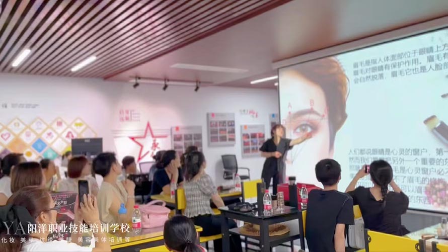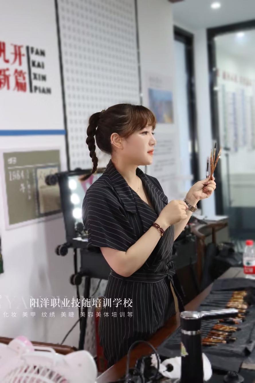 陽洋時尚化妝培訓(xùn)學(xué)校創(chuàng)始人楊娜娜老師受邀請參加了本次化妝講座。擔任授課老師。