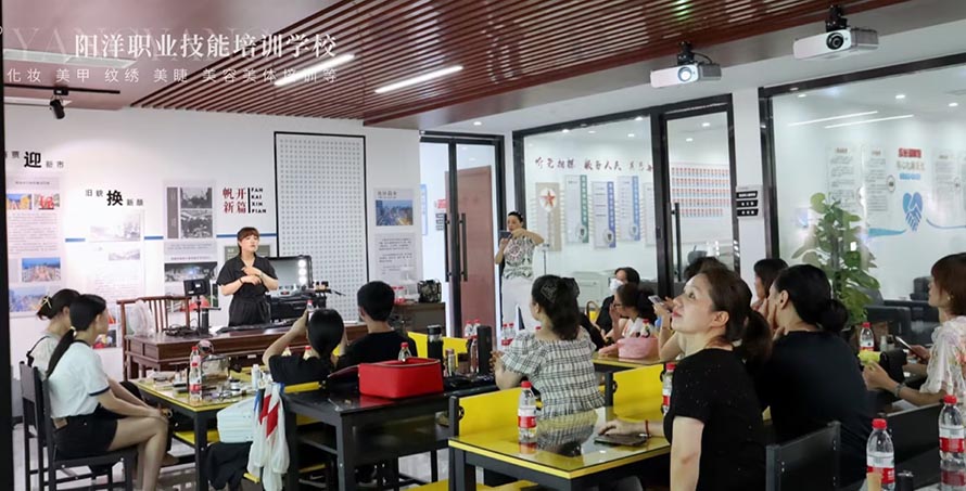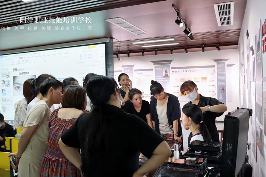 2022年7月10日陽洋時尚化妝培訓(xùn)學(xué)校在北白象白塔王社區(qū)由樂清總工會舉辦的一場, 針對不會化妝社區(qū)人員的化妝技巧化妝課程。