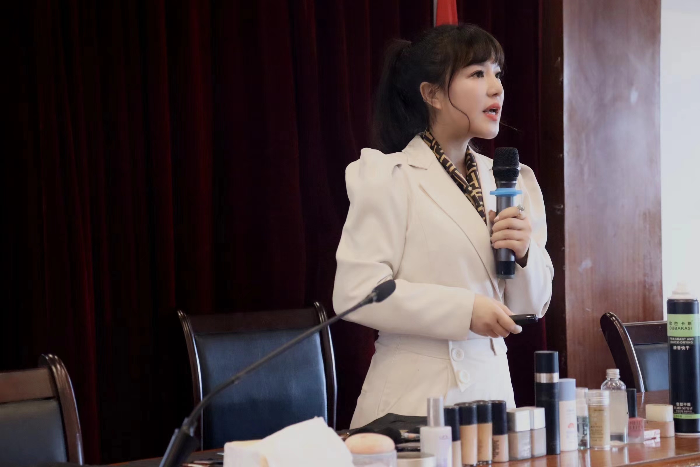 首先楊老師先給同學(xué)們簡(jiǎn)單講解化妝工具的認(rèn)識(shí),如何選擇適合工具,化妝的基本流程,工具的使用,不同工具的作用。