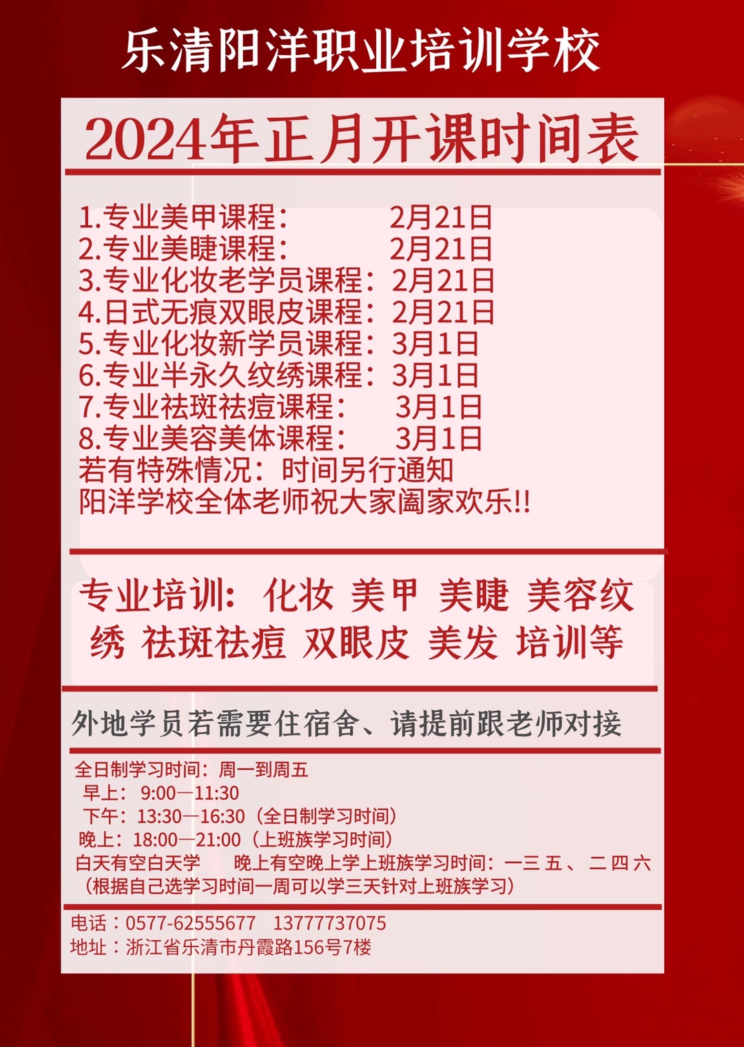 當(dāng)前位置:樂清市陽洋職業(yè)技能培訓(xùn)學(xué)校 » 學(xué)校新聞2024春季開課時(shí)間表 樂清哪里學(xué)化妝?發(fā)布時(shí)間:2024-1-20 16:14:15 瀏覽次數(shù):1954 |