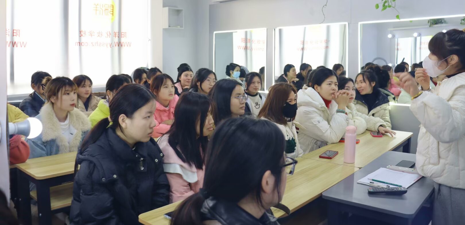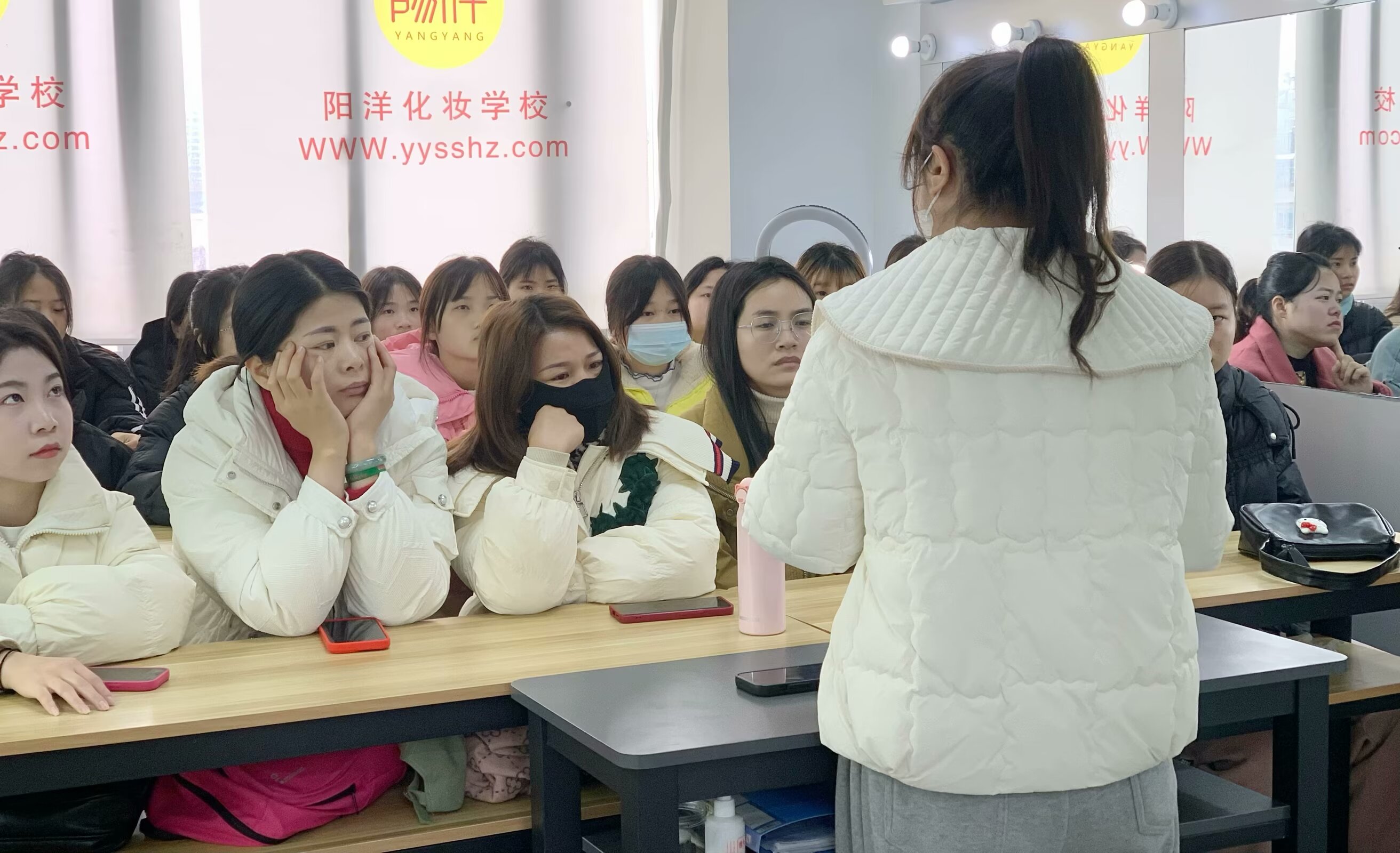 共同聆聽開學第一課 作為對化妝行業(yè)零基礎的新同學們來說,這個行業(yè)是陌生的,通過開學第一課,老師通過職業(yè)生涯規(guī)劃,與講解職業(yè)所需要具備的技能與涵養(yǎng)為同學們初步構造起作為一個專業(yè)化妝師的初步世界觀構架。