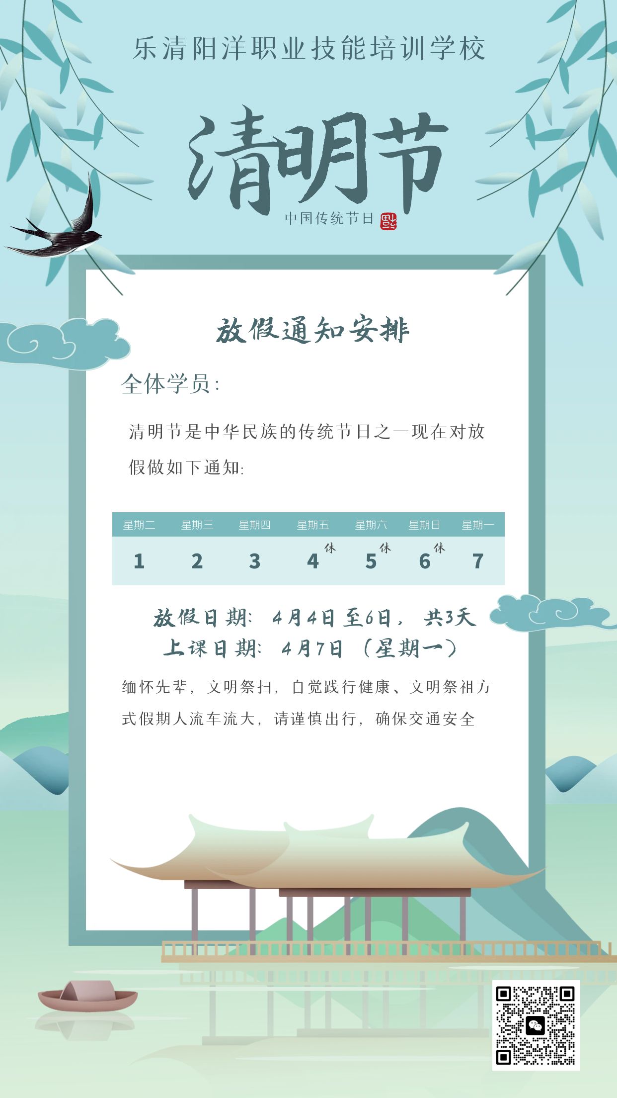 當(dāng)前位置:樂清市陽洋職業(yè)技能培訓(xùn)學(xué)校 » 學(xué)校新聞樂清陽洋清明放假通知—樂清哪里學(xué)化妝|樂清化妝學(xué)校|樂清美甲學(xué)校發(fā)布時(shí)間:2025-4-3 13:03:27 瀏覽次數(shù):2003 |