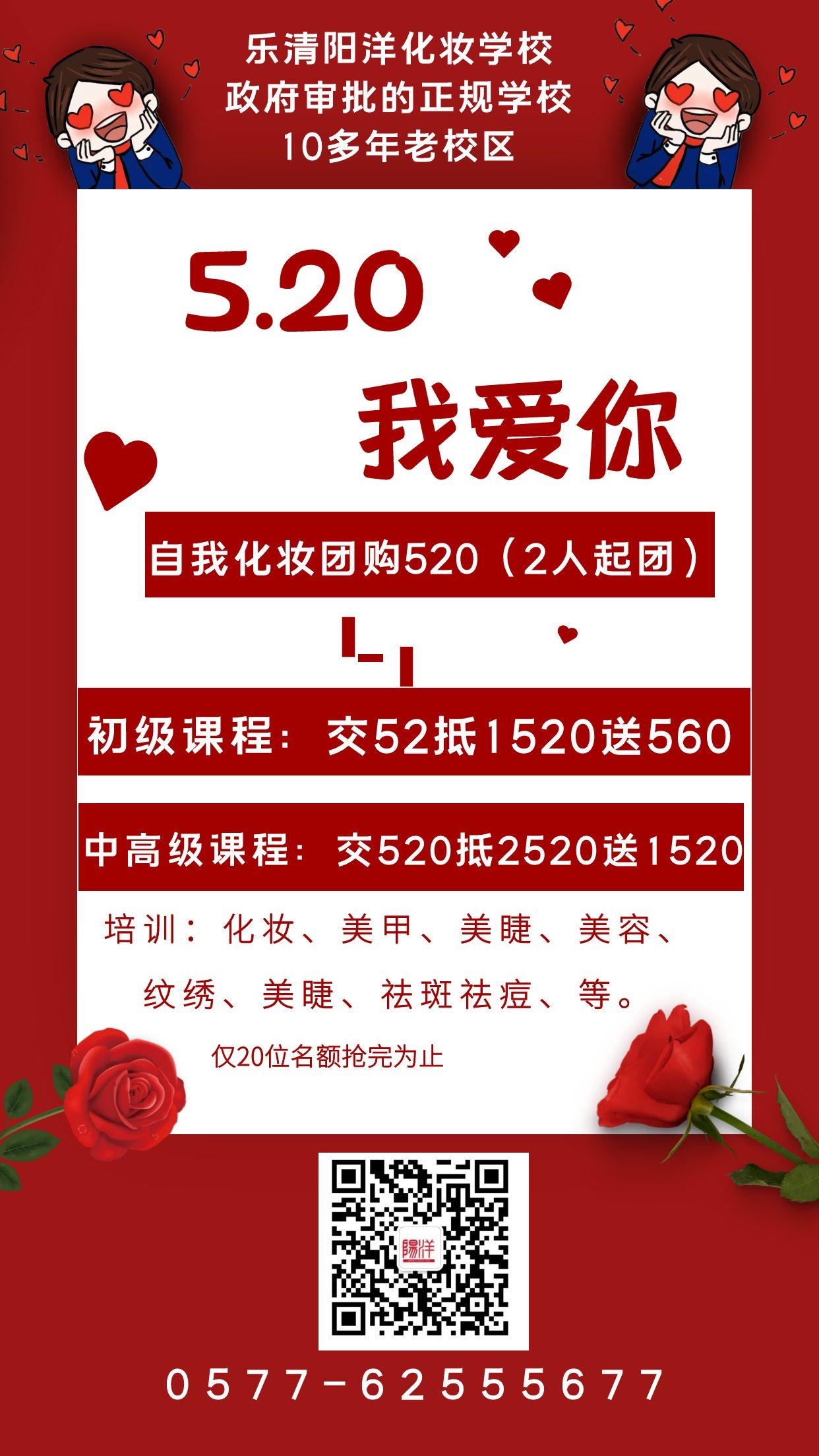 當前位置:樂清市陽洋職業(yè)技能培訓學校 » 學校新聞樂清陽洋520活動|樂清哪里學化妝|樂清化妝學校|樂清美甲學校發(fā)布時間:2025-5-20 9:32:27 瀏覽次數(shù):1995 |