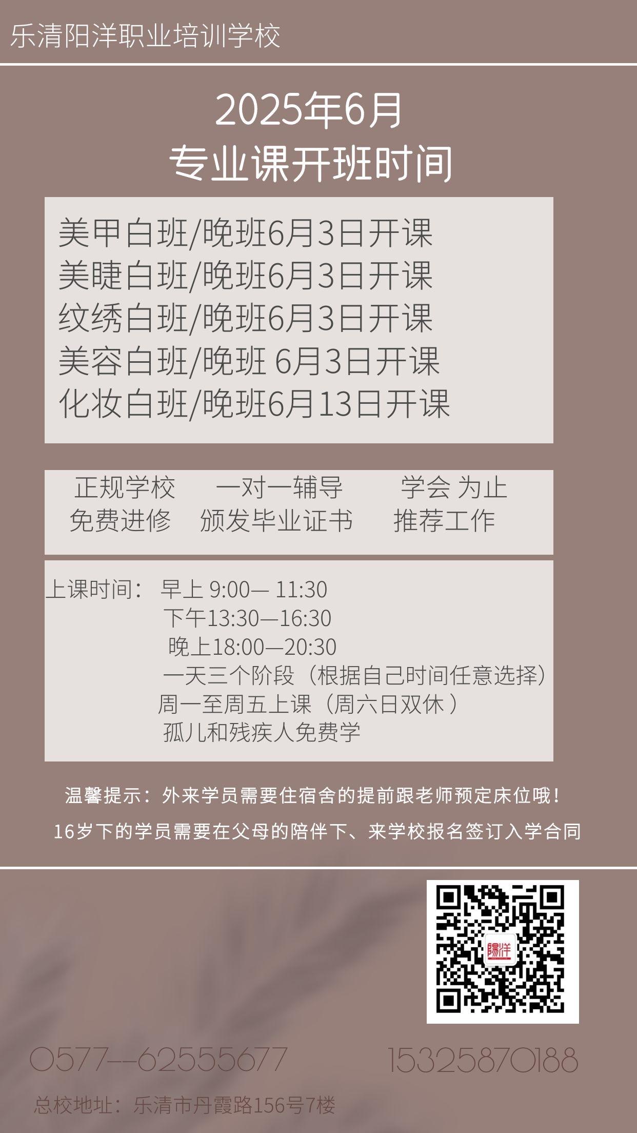 當(dāng)前位置:樂清市陽洋職業(yè)技能培訓(xùn)學(xué)校 » 學(xué)校新聞樂清陽洋2025年6月開課信息|樂清哪里有學(xué)化妝|樂清化妝學(xué)校|柳市哪里有學(xué)化妝發(fā)布時(shí)間:2025-5-22 18:18:22 瀏覽次數(shù):2002 |